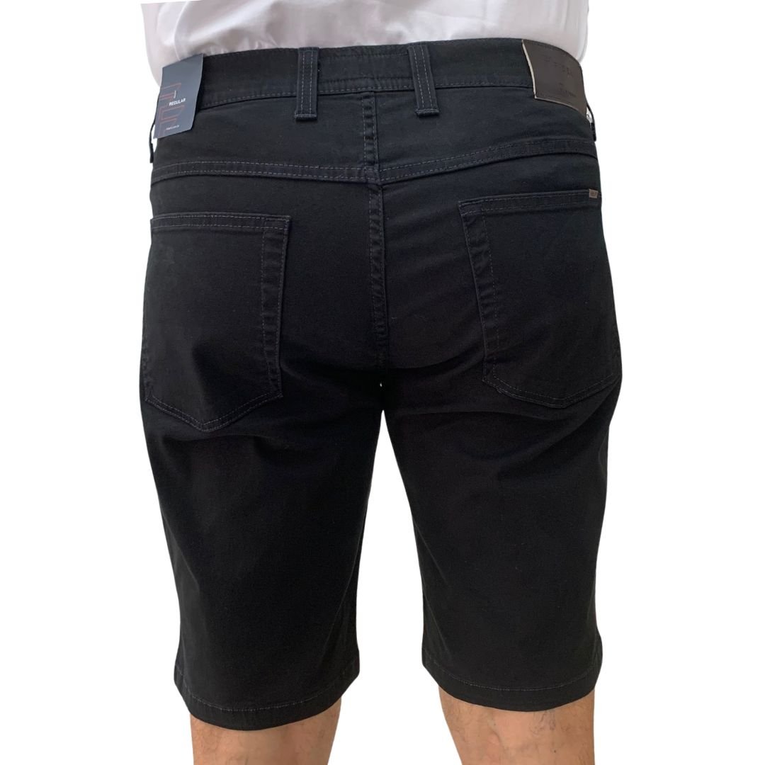 Bermuda Sarja Fideli Giorno Regular Preta BR50401671. Uma bermuda para ser usada em qualquer ocasião, do trabalho ou momentos de lazer com a família e amigos. Sua composição de 98% algodão e 2% elastano, possui dois bolsos frontais e 2 bolsos traseiros. Pode ser usada com camisas polos e camisetas, ideal para os dias de calor. Compre logo a sua.