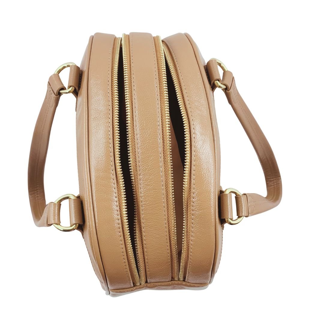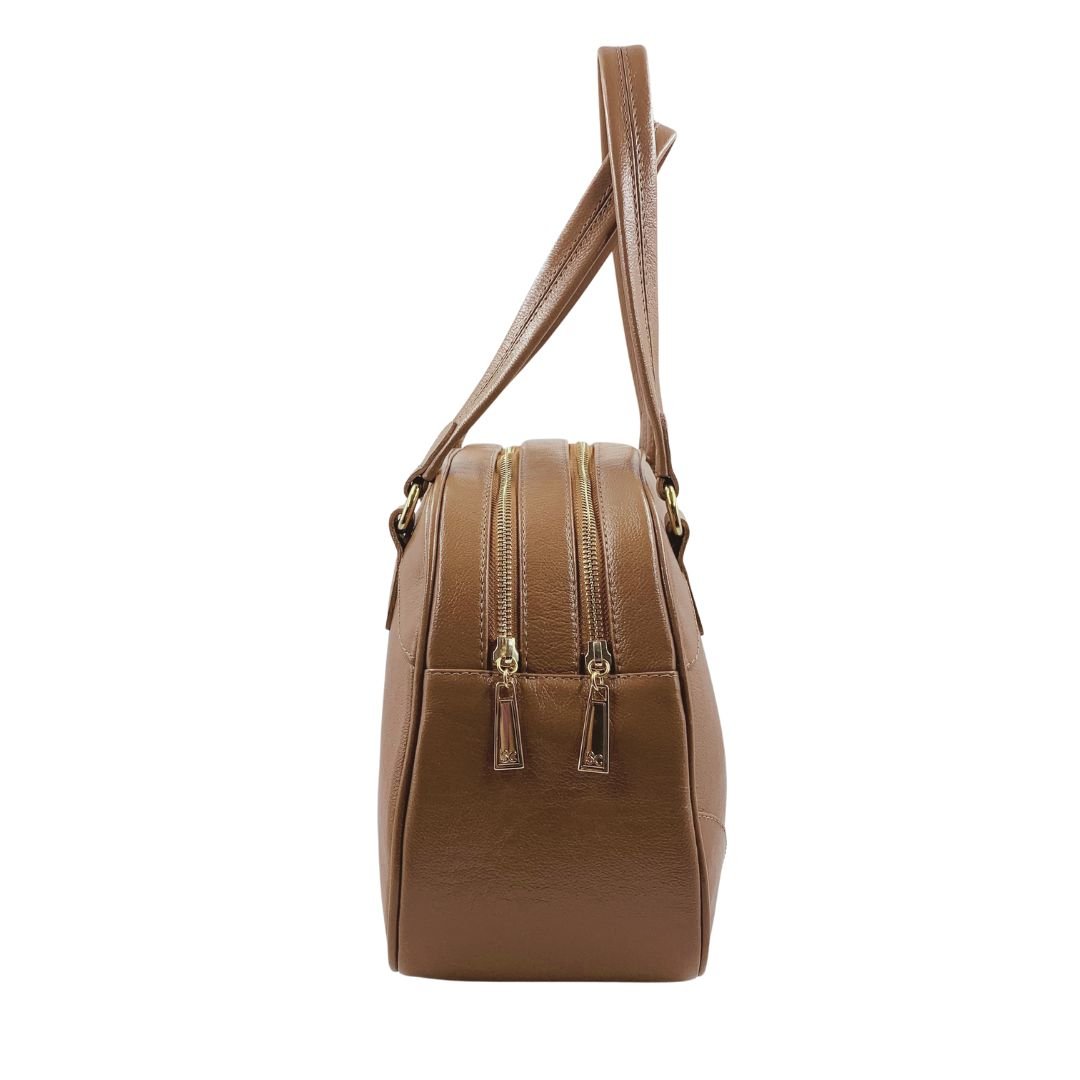 Bolsa Baú Tote Scamboo Couro Caramelo 2024. A bolsa é um item essencial na vida da mulher, variando o tamanho das pequenas as grandes. Confeccionada em couro, possui duas aberturas com fechamento em zíper, ambos com bolsos auxiliares por dentro. Sua estrutura firme e o tom neutro permitem composições versáteis para o dia a dia, do escritório aos compromissos sociais. Um modelo funcional, pensado para acompanhar a rotina com estilo e praticidade.