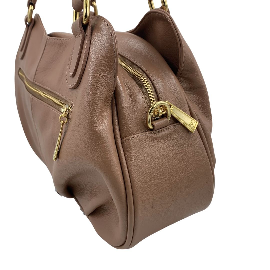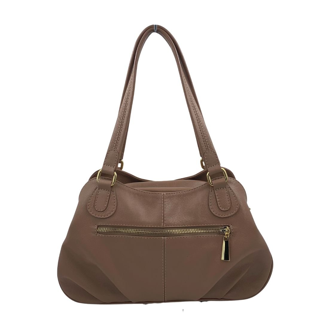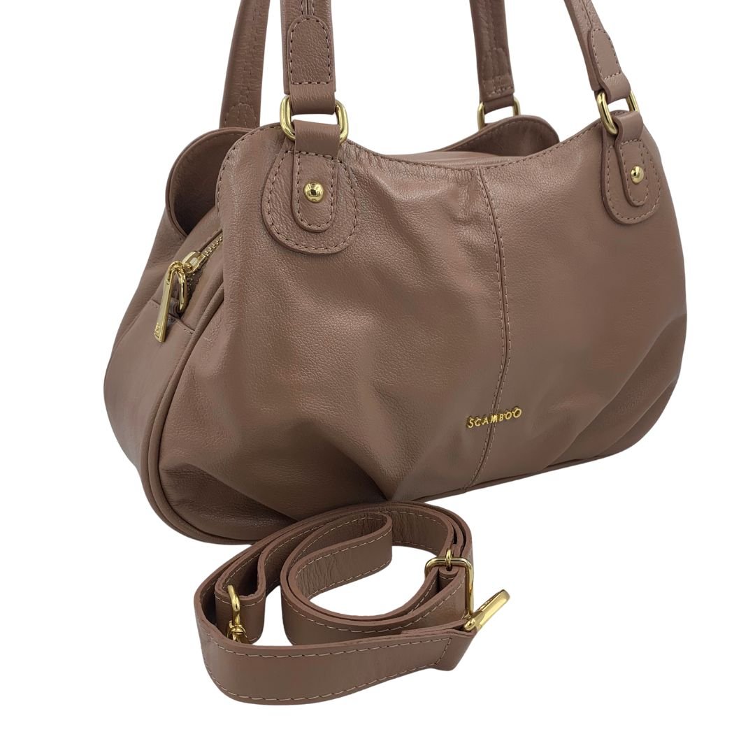 Bolsa de Ombro Scamboo Couro Bege 2035. A bolsa é um item essencial na vida da mulher, variando o tamanho das pequenas as grandes. Confeccionada em couro, possui uma abertura principal com fechamento em zíper, com bolso auxiliar no seu interior, conta também com duas aberturas secundárias com fechamento em íman, e um bolso auxiliar na parte de traz com fechamento em zíper. Possui também uma alça longa regulável. Com espaço interno bem distribuído e design atemporal, ela acompanha desde compromissos profissionais até momentos de lazer com praticidade e estilo.