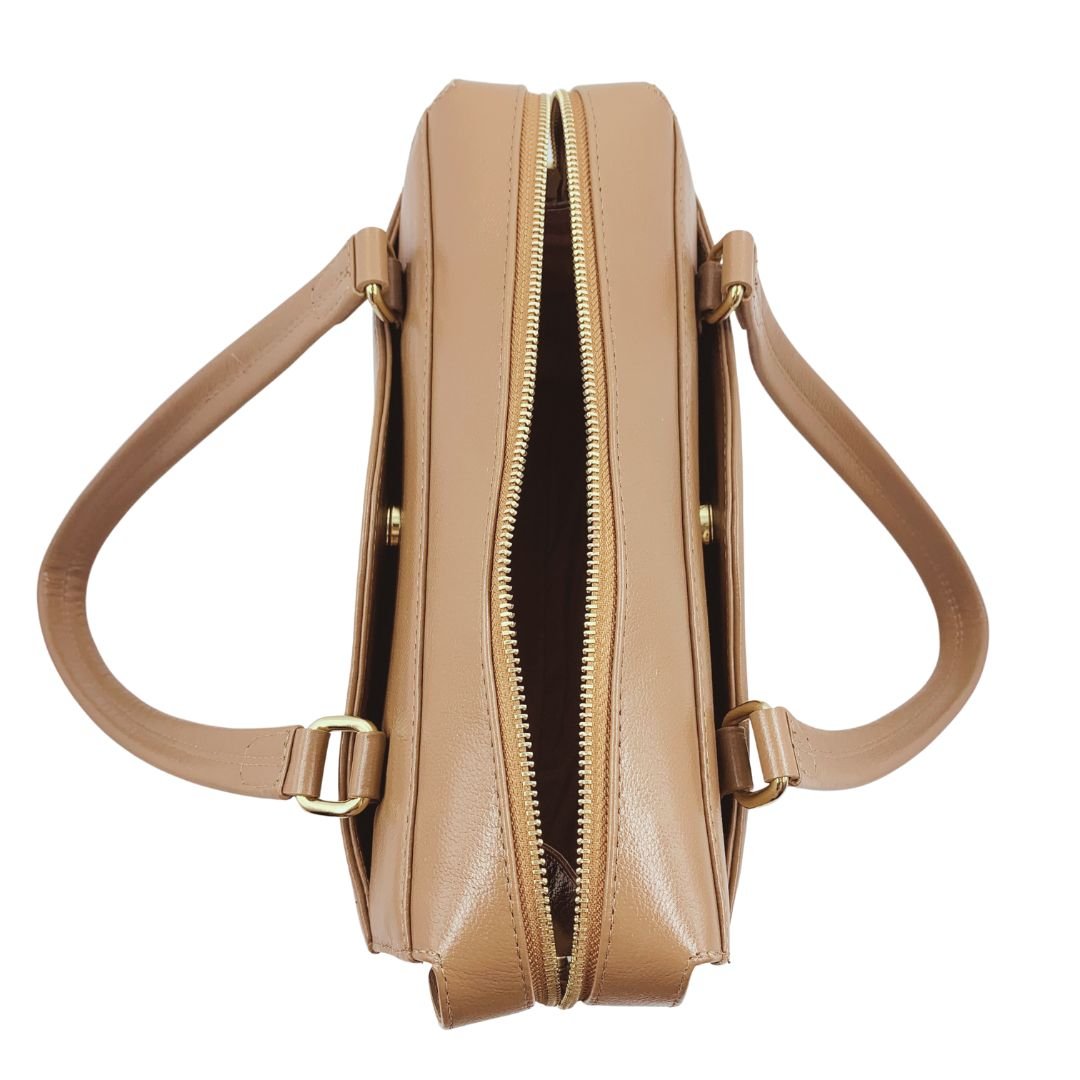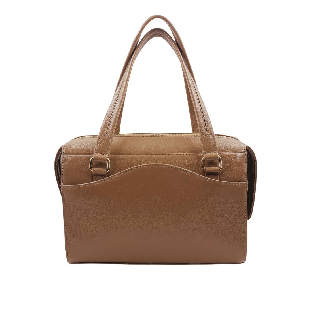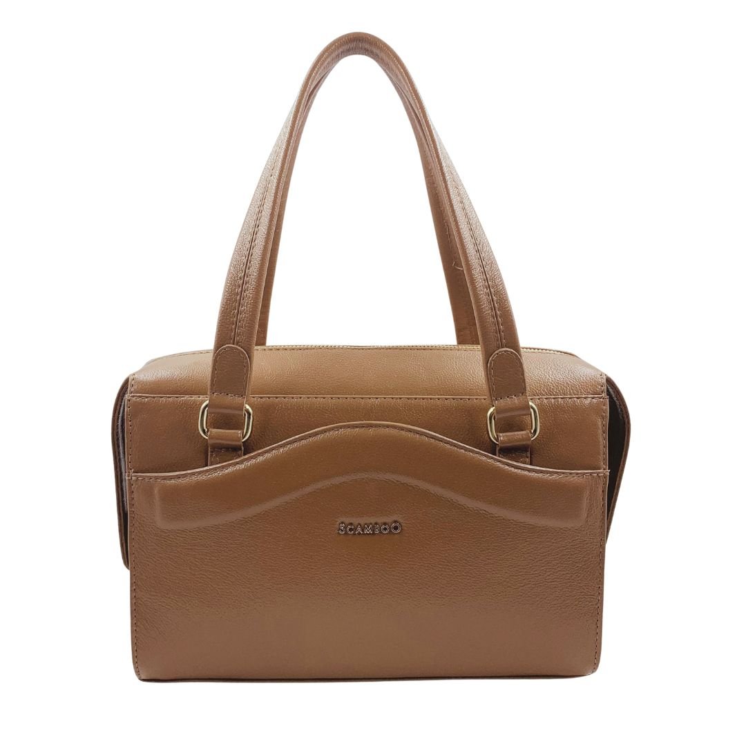 Bolsa de Ombro Scamboo Couro Caramelo 2005. A bolsa é um item essencial na vida da mulher, variando o tamanho das pequenas as grandes. Confeccionada em couro, possui uma abertura principal com fechamento em zíper, com bolsos auxiliares no seu interior, e mais duas aberturas com fechamento em íman, na frente da bolsa e na parte de traz. Sua estrutura firme e o tom neutro permitem composições versáteis para o dia a dia, do escritório aos compromissos sociais. Um modelo funcional, pensado para acompanhar a rotina com estilo e praticidade.