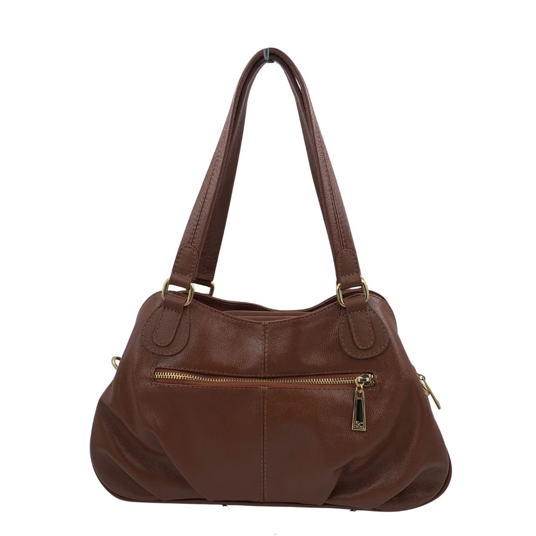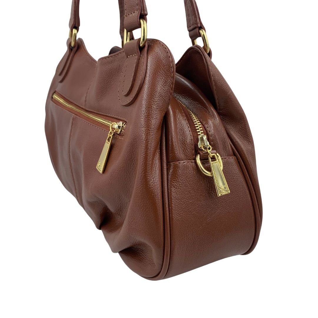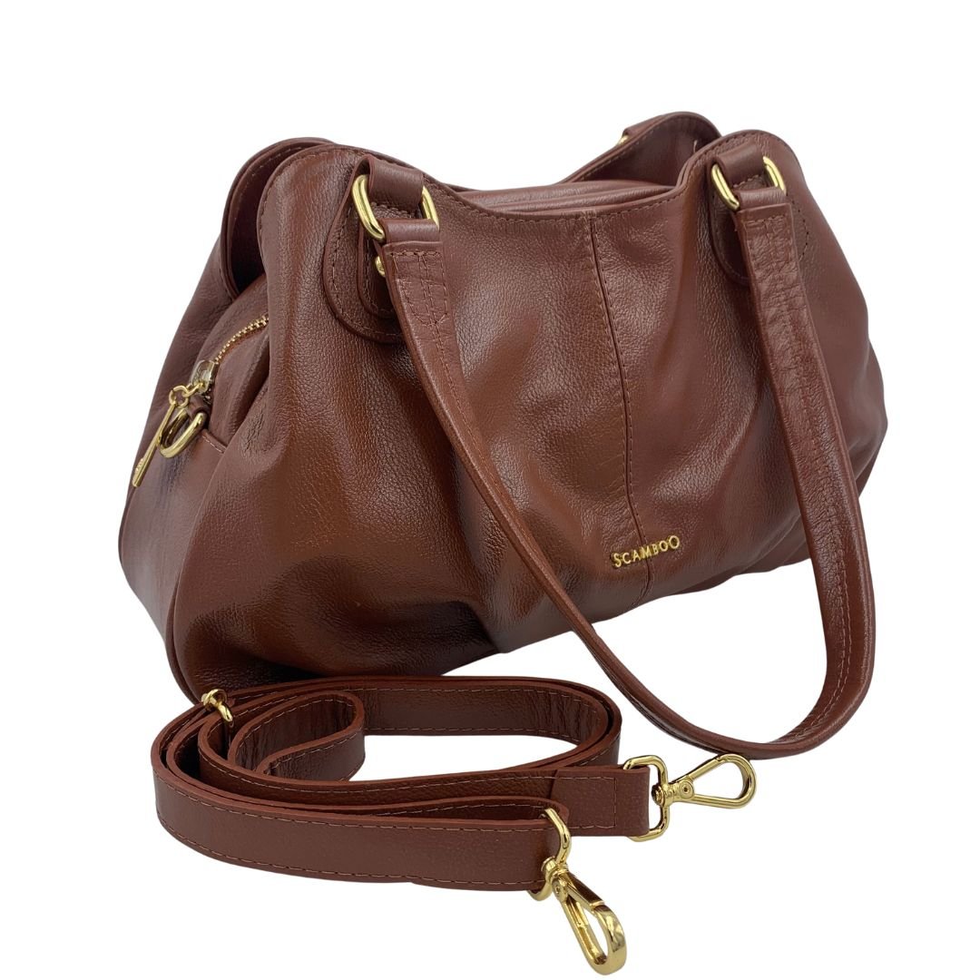 Bolsa de Ombro Scamboo Couro Caramelo 2035. A bolsa é um item essencial na vida da mulher, variando o tamanho das pequenas as grandes. Confeccionada em couro, possui uma abertura principal com fechamento em zíper, com bolso auxiliar no seu interior, conta também com duas aberturas secundárias com fechamento em íman, e um bolso auxiliar na parte de traz com fechamento em zíper. Possui também uma alça longa regulável. Com espaço interno bem distribuído e design atemporal, ela acompanha desde compromissos profissionais até momentos de lazer com praticidade e estilo.