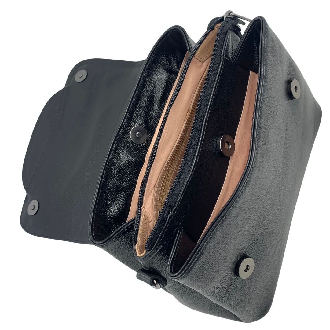 Bolsa Stachel Scamboo Couro Preta 1986. A bolsa é um item essencial na vida da mulher, variando o tamanho das pequenas as grandes. Confeccionada em couro, possui uma abertura principal com fechamento em zíper, com dois bolsos internos, possui também dois bolsos auxiliares com fechamento em íman, com alça longa ajustável. Une elegância e praticidade em um modelo clássico e versátil. Ideal para o dia a dia na cidade ou compromissos profissionais, ela oferece estilo, organização e funcionalidade, sendo perfeita para transportar seus itens essenciais com charme e sofisticação.
