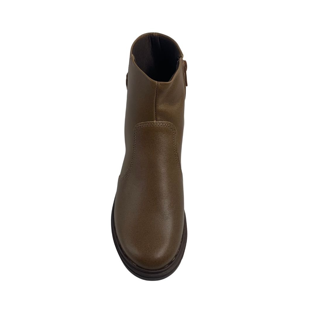 Produzida em couro legítimo, oferece alta durabilidade e melhor adaptação aos pés com o uso. O solado tratorado garante maior aderência ao solo, enquanto o design em cano curto facilita o calce e combina com diversas produções.