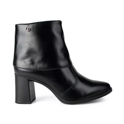 A Bota Dakota em couro preta cano curto com bico fino e salto bloco é a escolha ideal para quem busca elegância com conforto no dia a dia. O design sofisticado com bico fino alonga a silhueta, enquanto o salto bloco garante mais estabilidade e segurança ao caminhar.