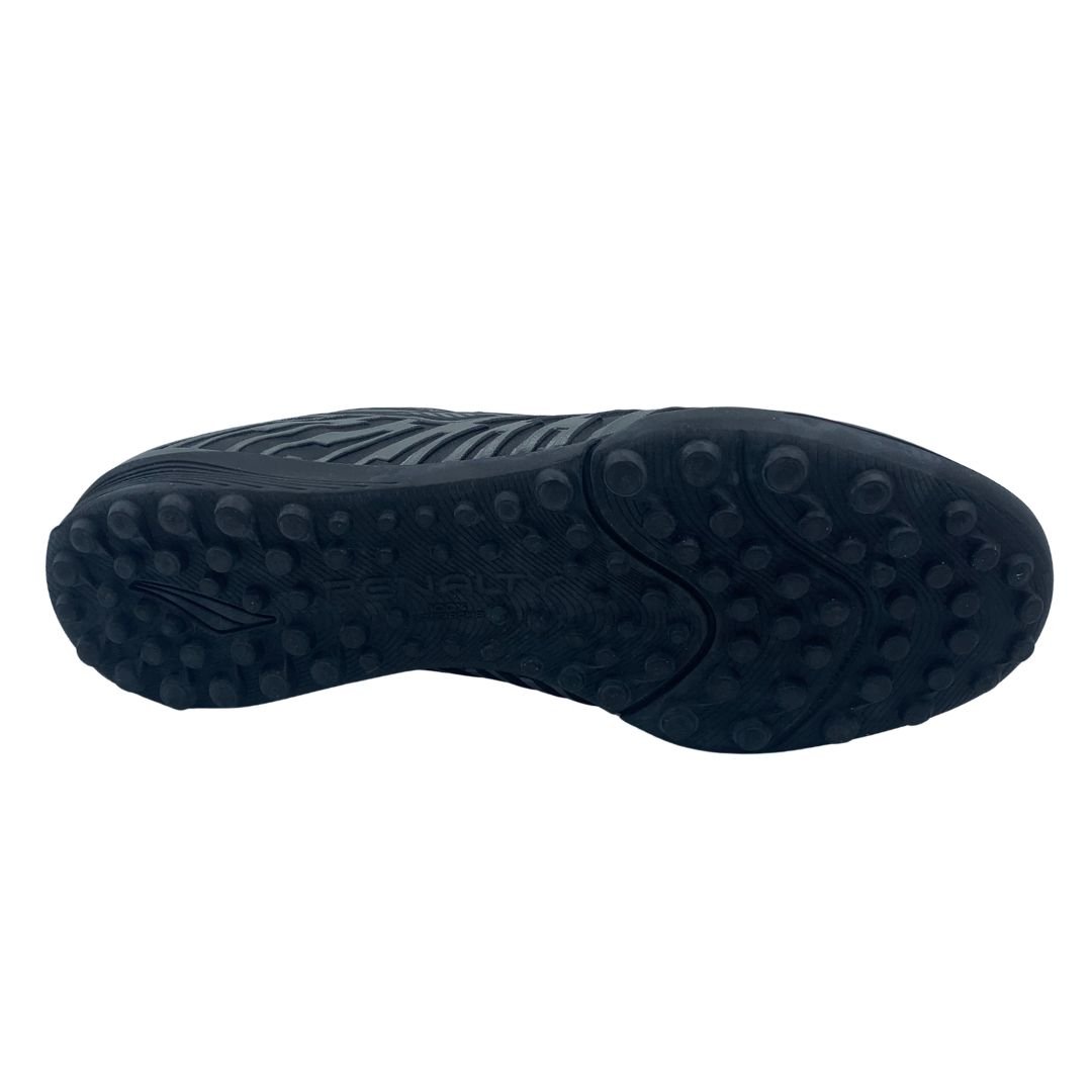 Seu solado emborrachado com travas baixas (TF) proporciona excelente aderência no gramado sintético, garantindo mais segurança nas arrancadas, mudanças de direção e jogadas rápidas. O cabedal resistente oferece durabilidade e bom controle de bola, ideal para quem joga com frequência.