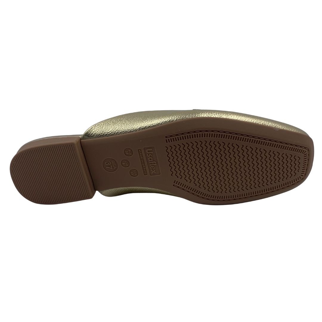 Mule Usaflex Couro com Detalhe Dourado 40025. Um clássico repaginado, não é de hoje que o mule vem conquistando corações a gerações. Fabricado em couro, possui bico quadrado, a cada uso vai se moldando ao formato dos seus pés, o deixa mais confortável a cada uso. Sua palmilha possui memória permanente, fazendo o formato do seu pé, com forro interno macio o deixando mais confortável. Sua sola fabricada em borracha antiderrapante traz estabilidade e segurança a cada passo. Perfeito para usar no dia a dia, ou trabalho com looks mais casuais. Sinta o conforto se um Usaflex, compre logo o seu!