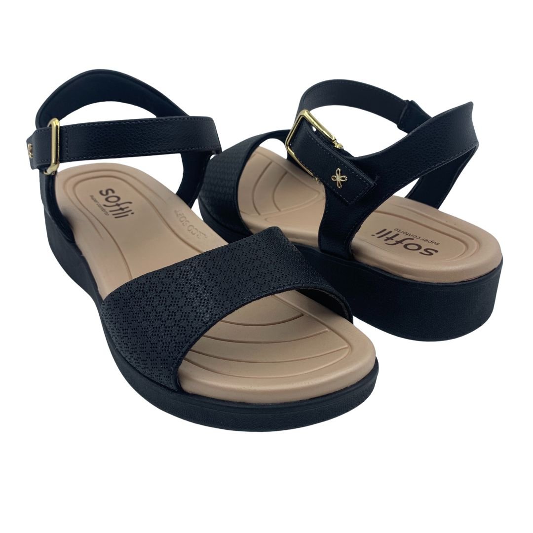 Sandália Calce Fácil Arco Soft Softli Preta 10268. As sandálias confortáveis estão ganhando cada vez mais espaço no dia a dia da mulher, podendo ser usada por várias horas sem causar desconfortos ou dores. Esse modelo da Softli com salto anabela é perfeita para você que procura conforto e praticidade, sua palmilha feita em EVA, possui suporte para o arco plantar, proporcionando ainda mais conforto para quem sofre com fascite plantar. Confeccionada em napa sintética macia se adequando ao formato dos pés, com fechamento em superfície alto colante, que facilita na hora do calce. Sua sola é fabricada em borracha antiderrapante, traz estabilidade e segurança ao caminhar. Softli o conforto com cara nova, garanta já a sua.