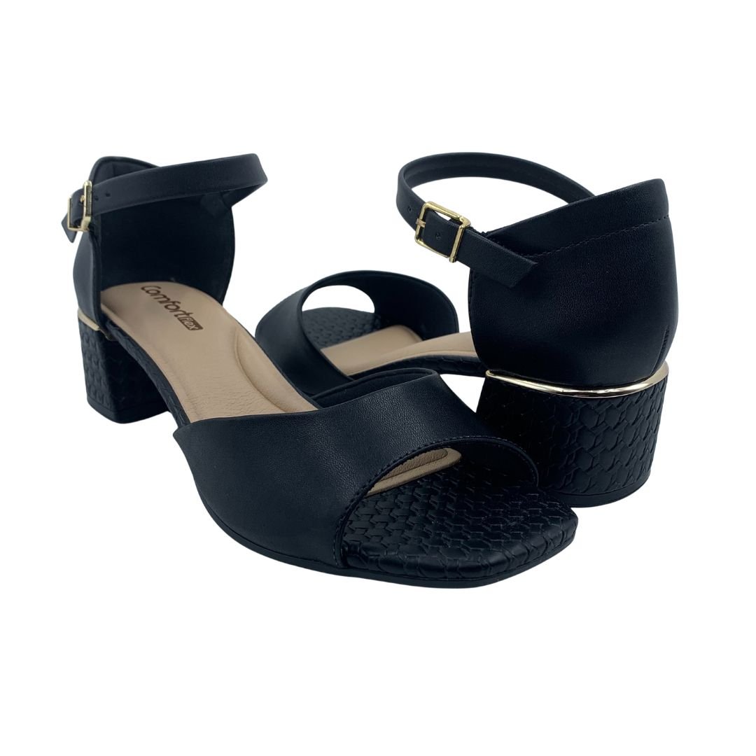Sandália Casual Comfortflex Salto Bloco Baixo Preta 2554405. O salto bloco vem conquistando espaço a cada ano que passa, dando conforto e estabilidade à mulher, tanto no dia a dia, como em momentos de lazer. Seu solado fabricado em borracha antiderrapante garante estabilidade para cada passo, seu salto de aproximadamente 5 cm, dá poder para a mulher moderna. Fabricada em material sintético macio, proporcionando conforto a cada uso, sua palmilha estofada traz conforto. Sinta o conforto de um Comfortflex, garanta logo o seu!
