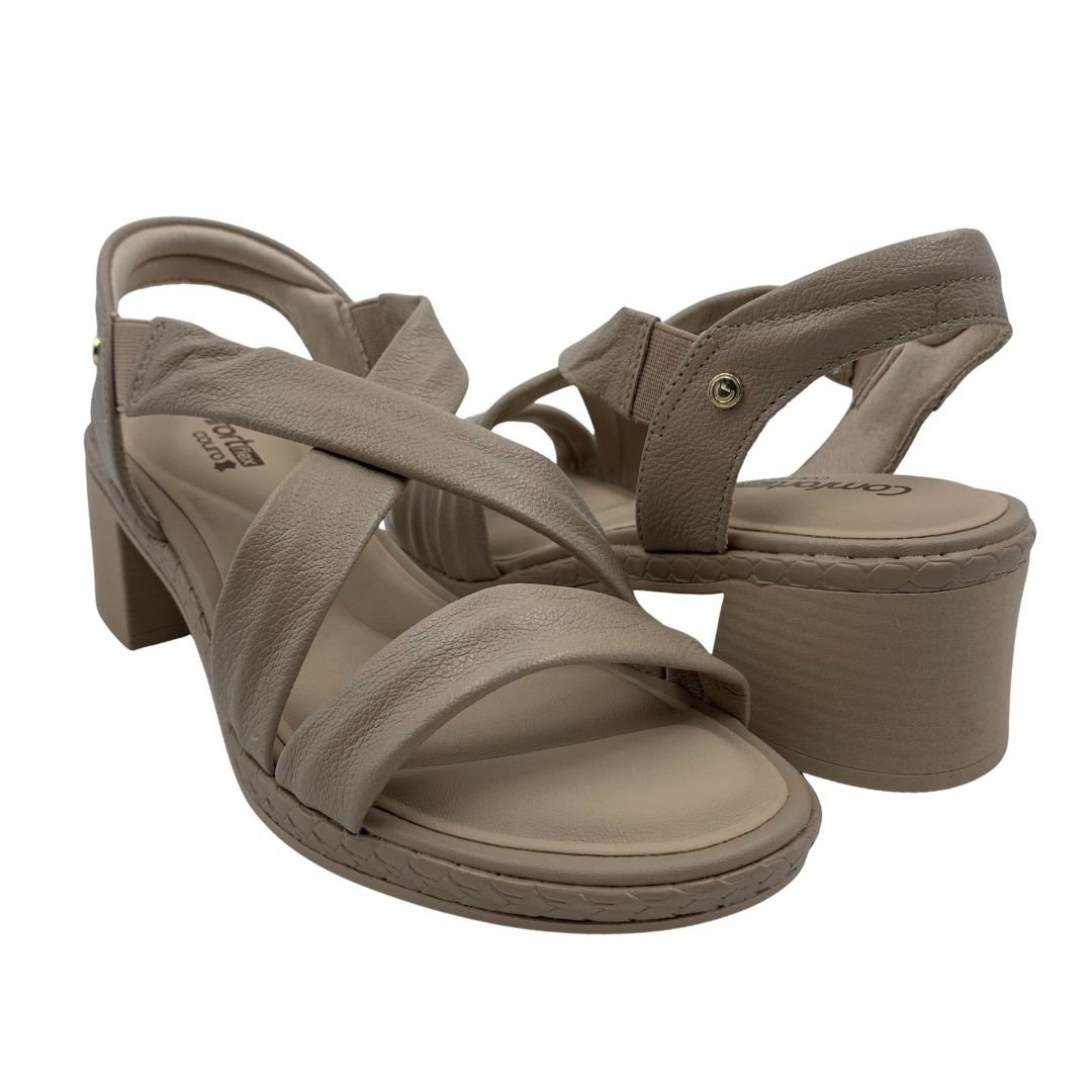 Nome: Sandália Casual Couro Comfortflex Salto Bloco Bege 2567403