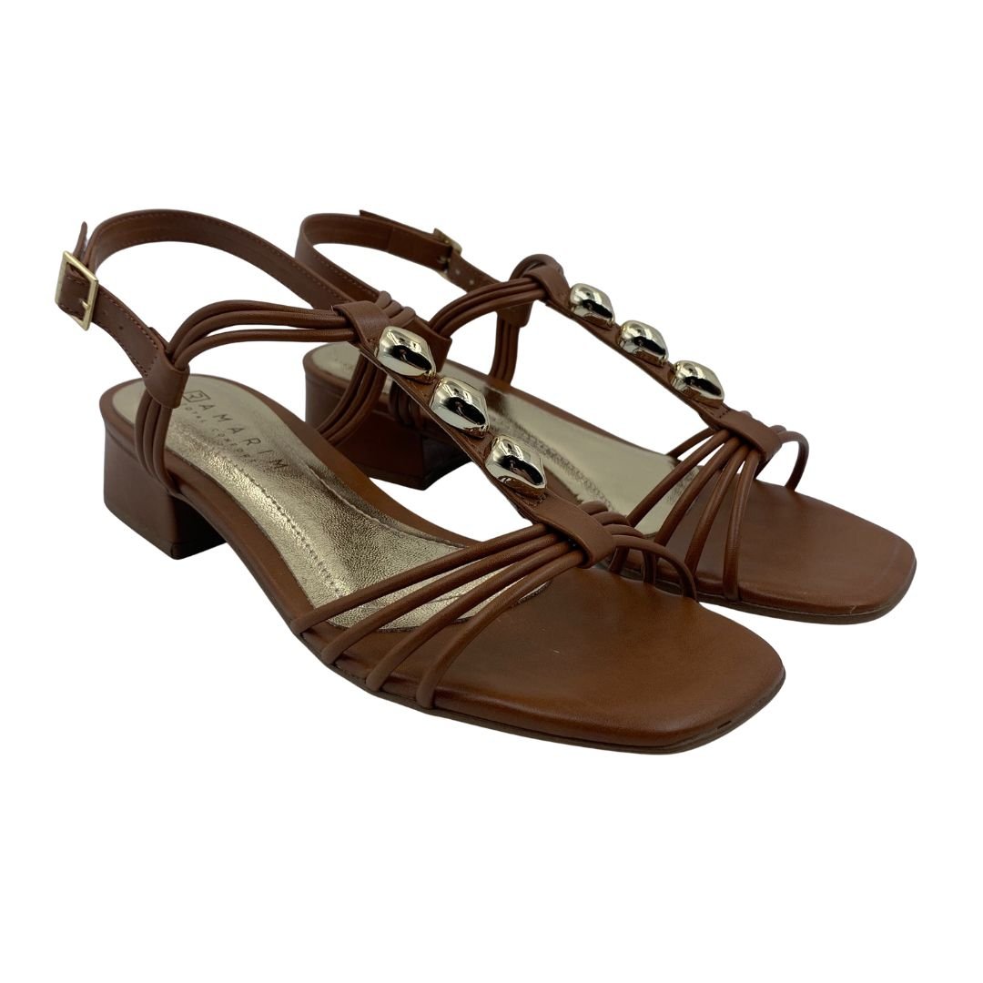 Sandália Casual Ramarim Salto Baixo Marrom 2548203. Uma sandália que você pode usar no trabalho e em momentos de lazer, trazendo conforto e elegância, podendo ser usada com os mais variados looks. Fabricada em napa sintética, suas tiras finas trazem leveza e modernidade à sandália, com enfeite dourado, sua palmilha estofada garante conforto durante seu uso. Sua sola fabricada em borracha antiderrapante traz estabilidade e conforto, seu salto de 3 cm garante um toque de feminilidade ao tamanco. Ramarim seja dona do seu próprio estilo, adquira logo o seu.