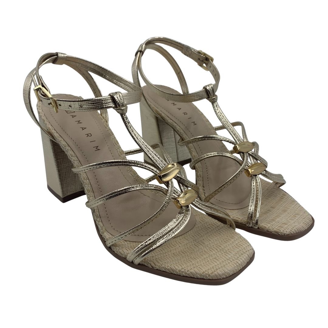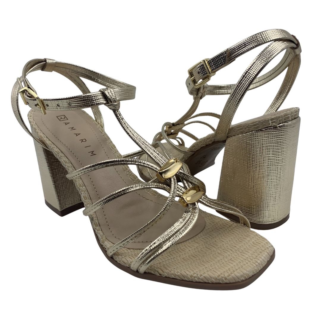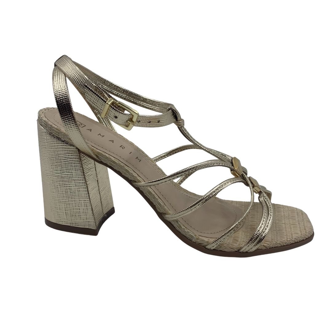 Nome: Sandália Casual Ramarim Salto Bloco Enfeite Dourada 2541204