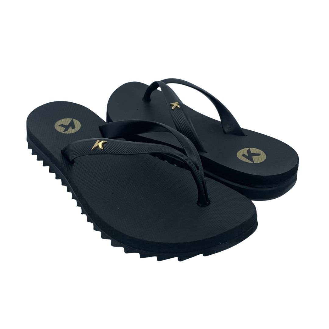 Sandália Feminina Kenner Ibiza Preta. Perfeita para quem não dispensa estilo e conforto, sua tira slim em gel maleável trás delicadeza, juntamente com seu identificador K metálico em níquel escovado. Palmilha de EVA expandido com textura pontos, a deixa mais confortável, solado tratorado de borracha vulcanizada que garante aderência e estabilidade durante seu uso. Sinta o conforto e a tecnologia nas sandálias Kenner. Kenner redefina-se!