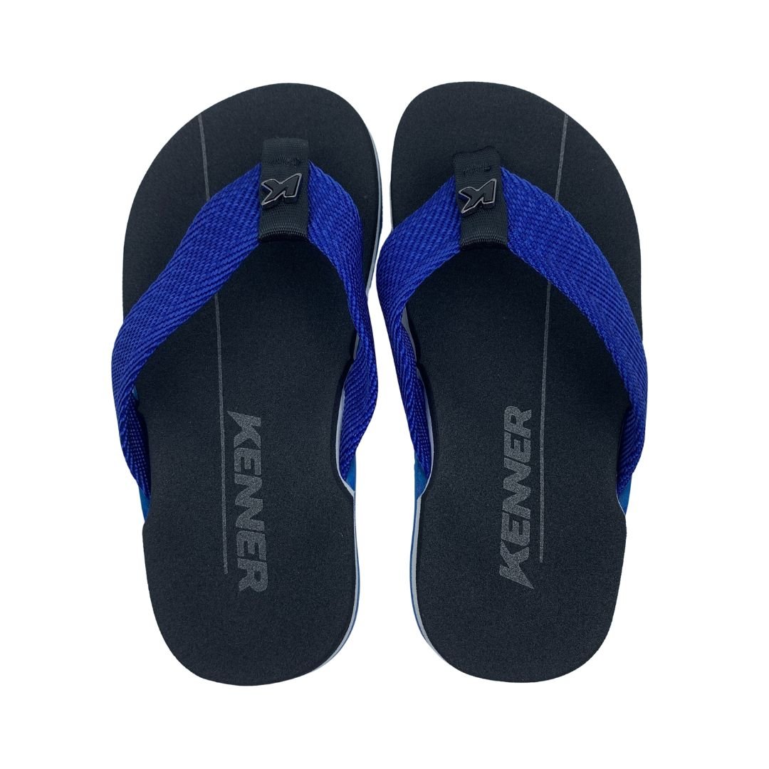 Sandália Infantil Kenner NK6 Azul com Preto. Para os meninos que gostam do estilo mais despojado da Kenner, chegou à versão kids, com o mesmo conforto e durabilidade, agora também na versão infantil. O encontro do solado com o cabedal entrega o máximo do design aliado ao conforto e a segurança. A palmilha e a entressola, são fabricadas em EVA super macio, que proporciona maior conforto, sua sola feita em borracha vulcanizada, garante o máximo de segurança a cada passo. Cabedal feito em nylon. Identificador K em níquel escovado prata. Kenner redefina-se!
