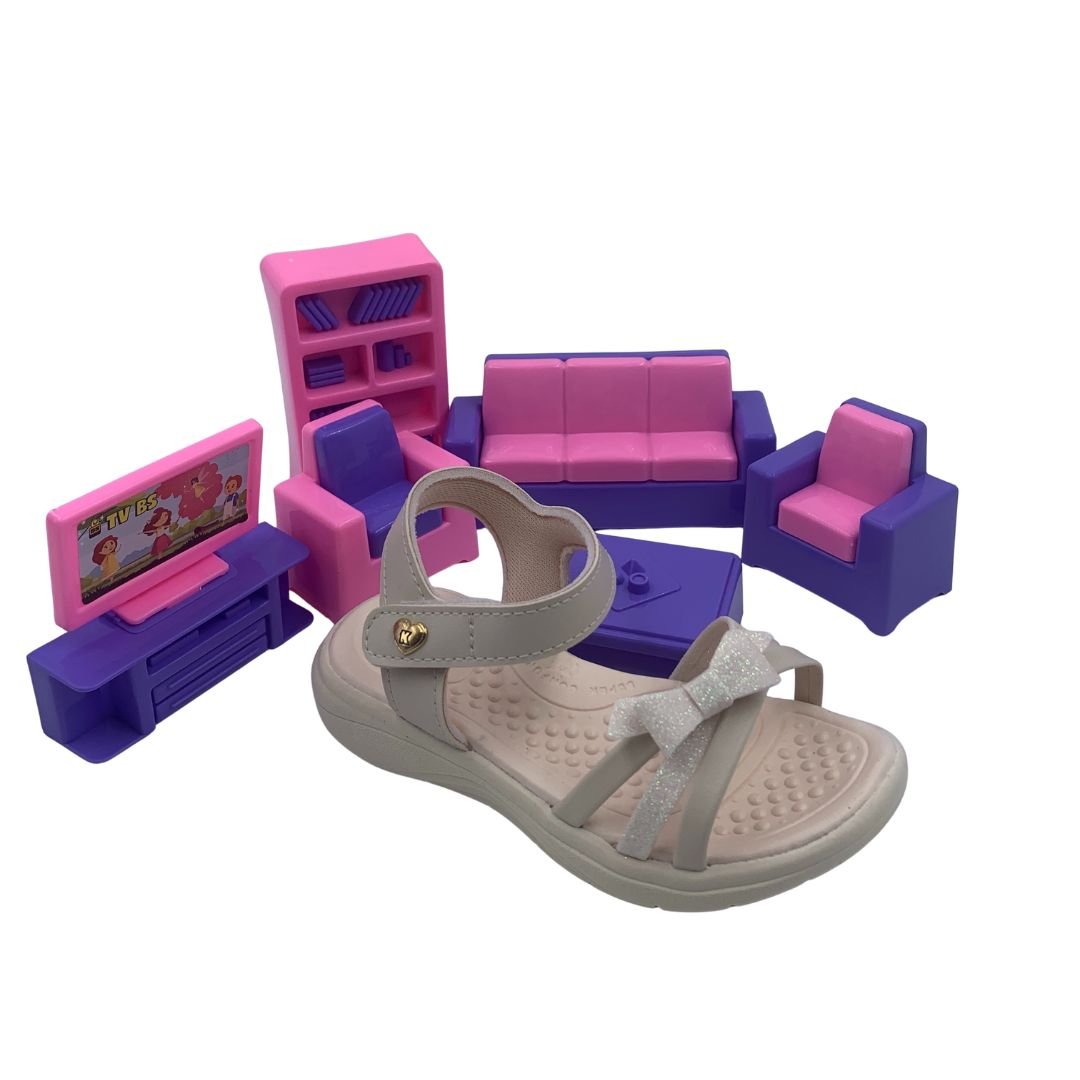 Sandália Menina Anatômica com Brinquedo Kidy Bege 1921079. Diversão e conforto em uma sandália, sua criança vai amar. Além da sandália ser super divertida e confortável, acompanha um brinquedo super divertido, miniaturas de móveis da sala para brincar. A sandália é fabricada em napa sintética, com estampa de garras na parte lateral externa da sandália, seu fechamento em superfície alto colante traz autonomia para as meninas, elas mesmos podendo tirar e colocar a sandália. Sua sola de borracha antiderrapante garante aderência e durabilidade, sua palmilha anatômica feita em EVA, traz o conforto e o amortecimento para a hora da diversão. Surpreenda sua filha, afilhada ou sobrinha com a sandália Kidy com um super brinquedo, compre logo, são poucas numerações!