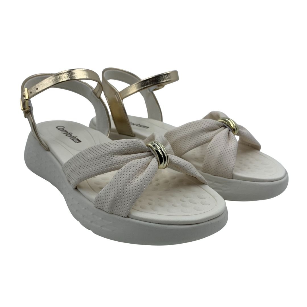 Nome: Sandália Papete Comfortflex com Enfeite Bege 2547403