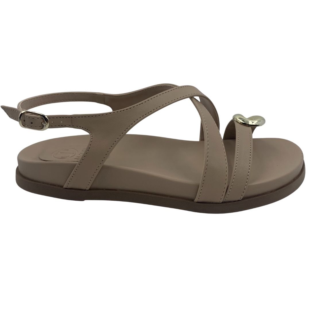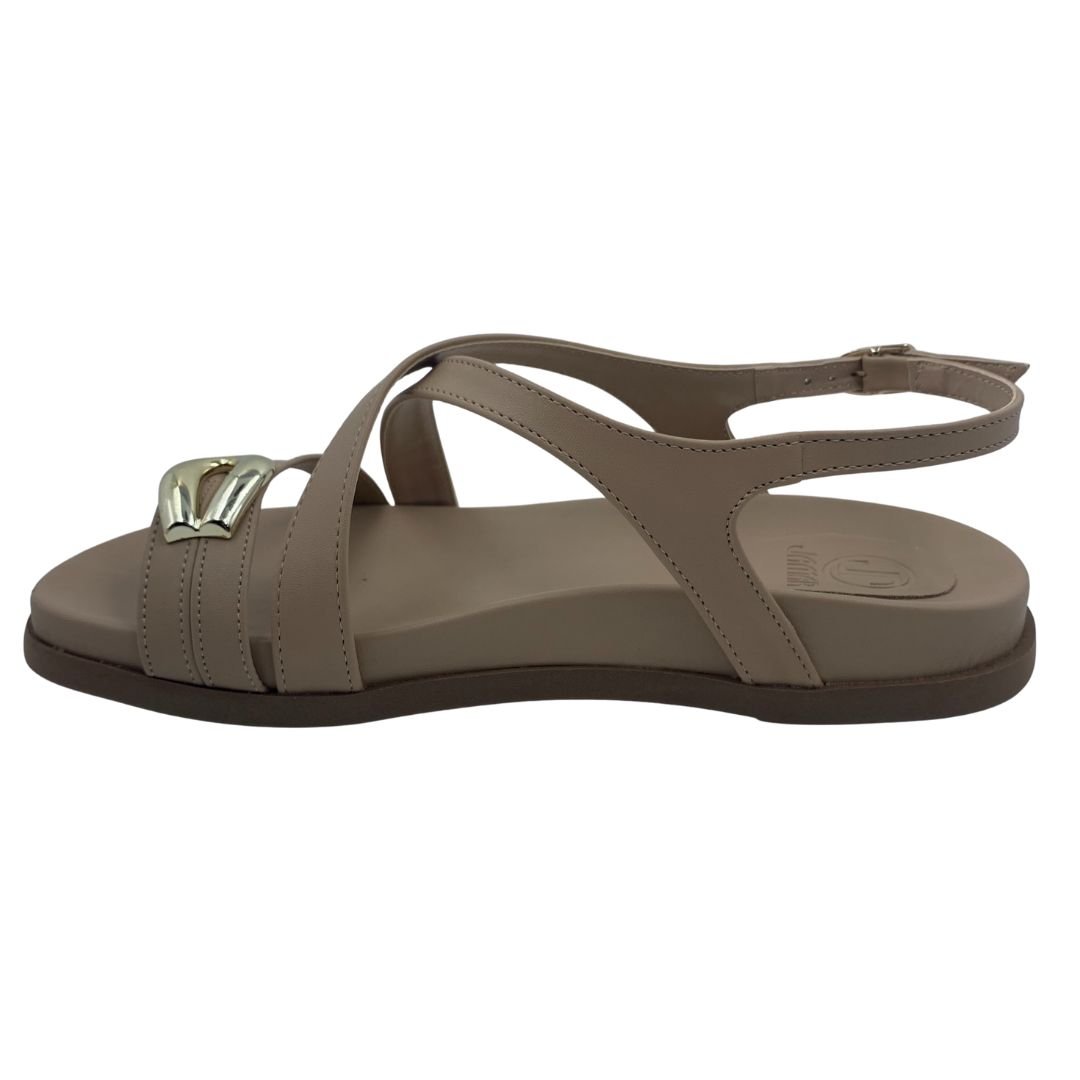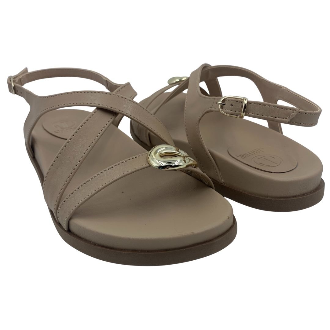 Sandália Papete Jamar com Enfeite Bege 293467. A tendência do momento que une conforto e versatilidade são as papetes, tendo seus modelos mais robustos ou mais delicados. Sola é fabricada em borracha antiderrapante, que garante estabilidade ao caminhar, sua palmilha anatômica traz conforto durante seu uso. Seu cabedal é fabricado em napa sintética, com enfeite dourado imitando uma fivela, dando um charme à papete. Compre logo sua papete Jamar, e arrase nesse verão.