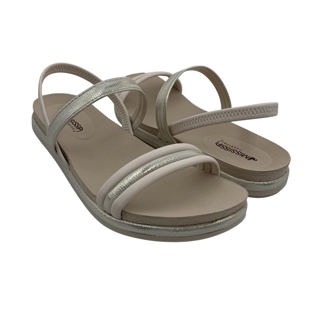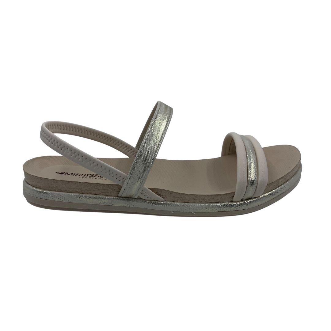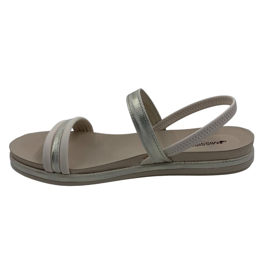 Sandália Papete Mississipi Calce Fácil Nude 454. A tendência do verão que continua para as próximas estações, são as papetes. Modelo que além de versátil é confortável, com seu solado flatform e sua palmilha anatômica feita em EVA proporcionam conforto, além de deixar seu look super fashionista. Seu cabedal fabricado em napa sintética, com tiras metalizadas com brilho trazem delicadeza à papete, seu calce fácil é perfeita para você que ama praticidade. Mississipi perfeita para você, compre logo a sua!