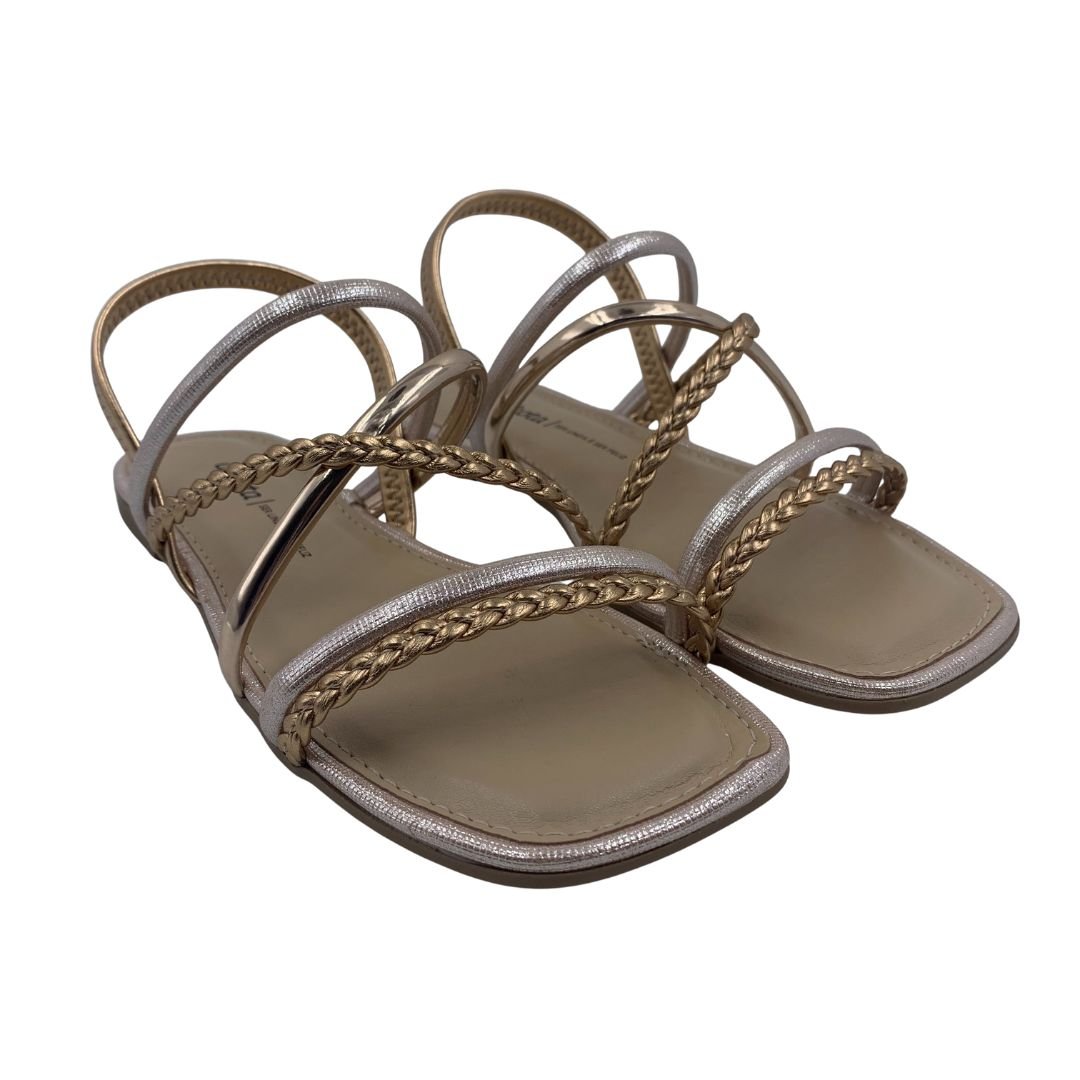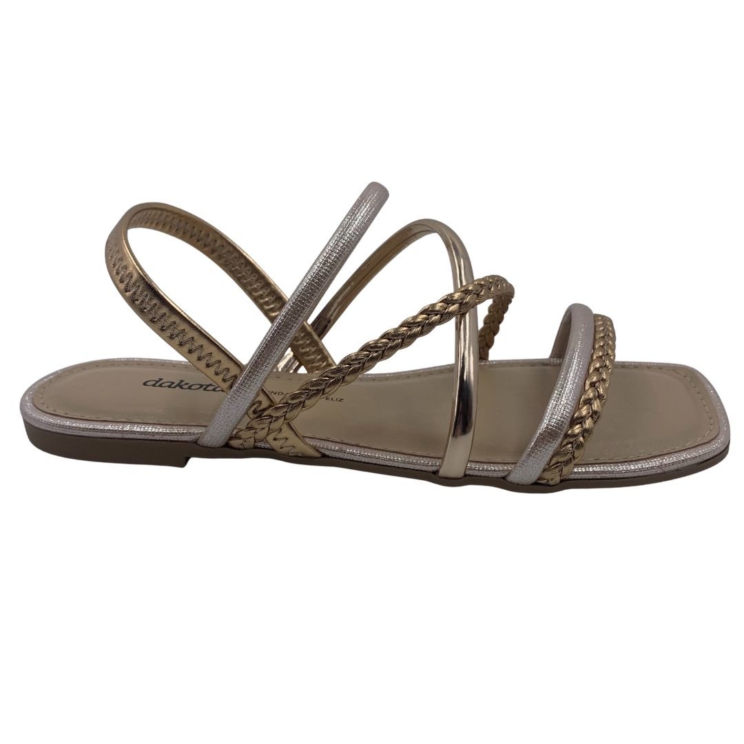 Nome: Sandália Rasteira Dakota Tira Trançada Dourada 9352