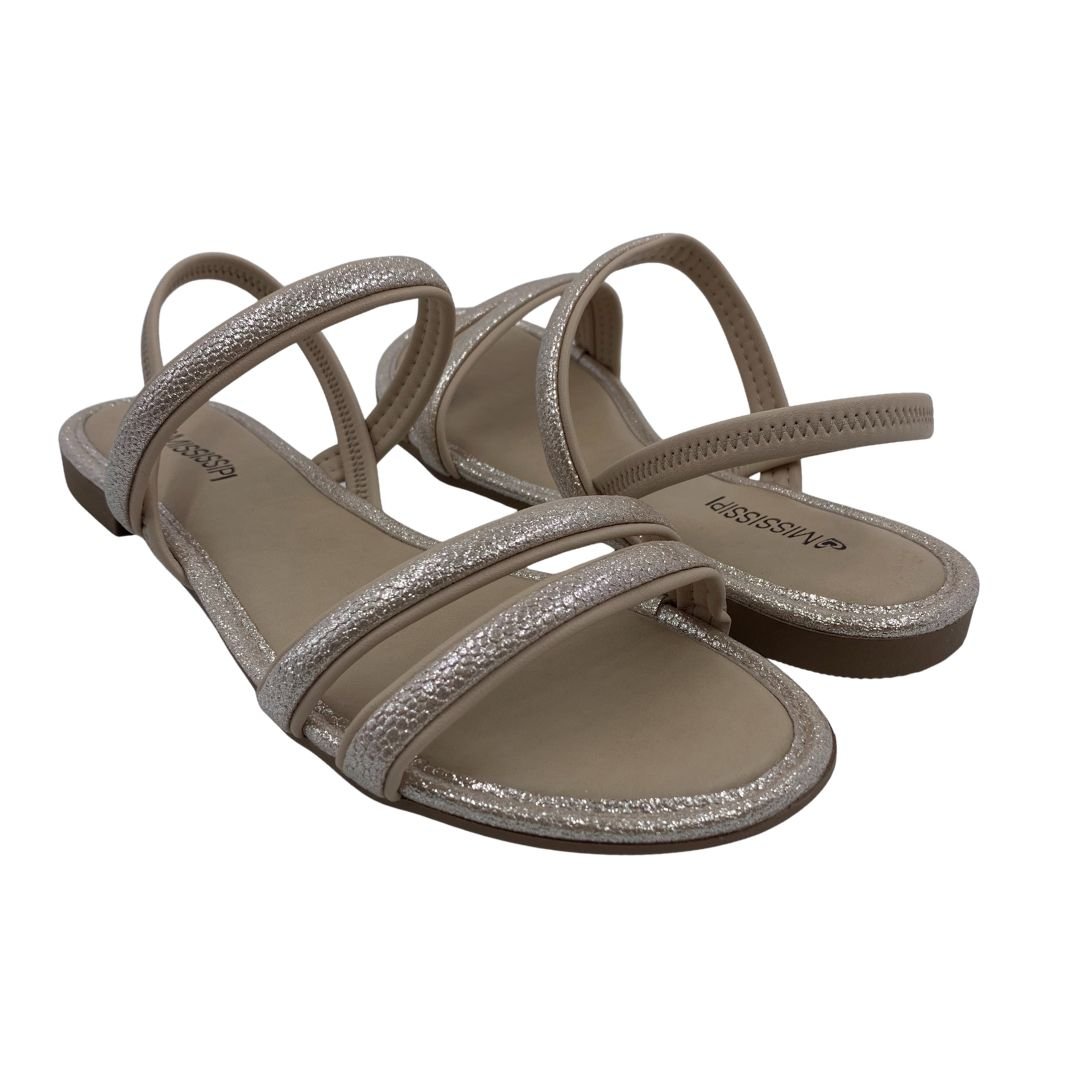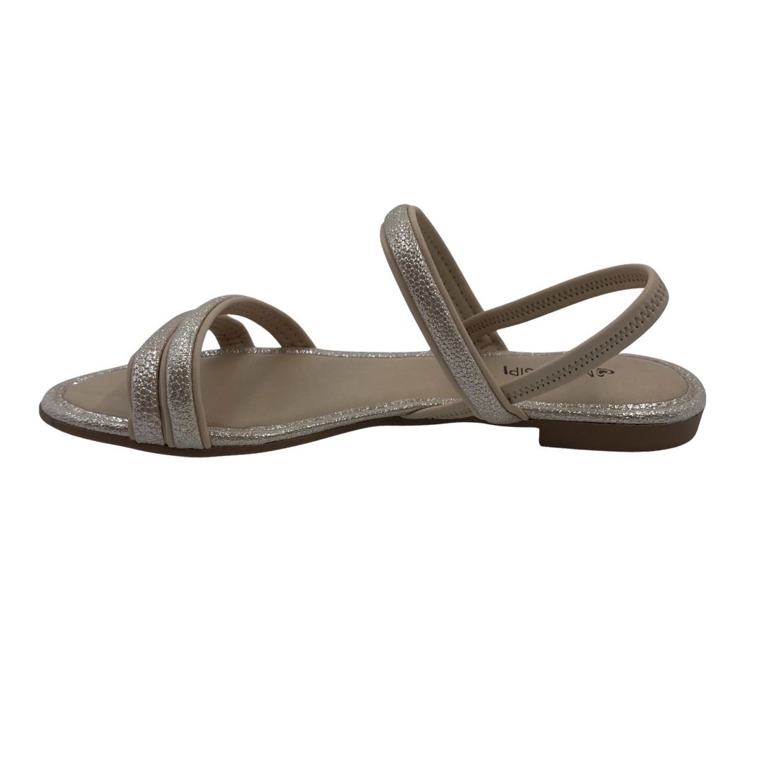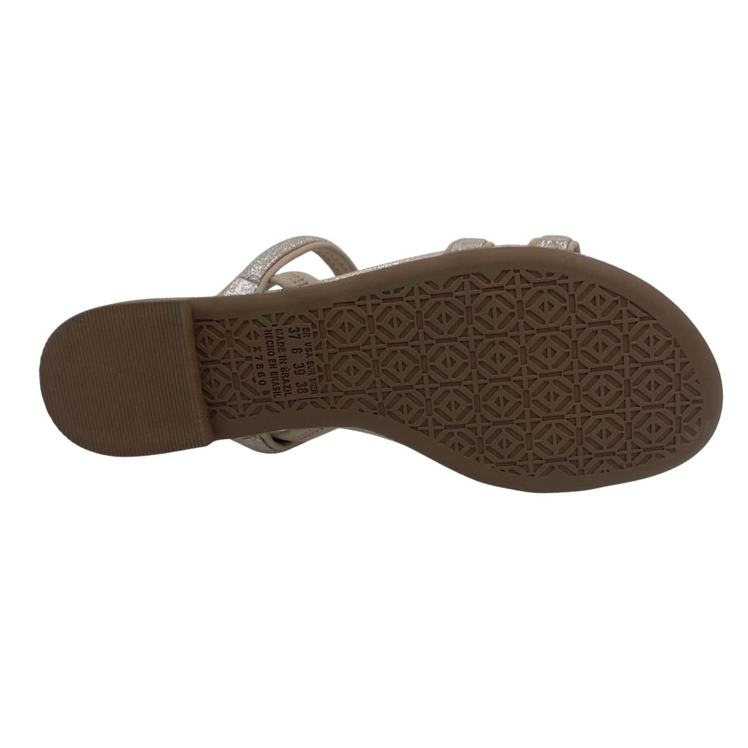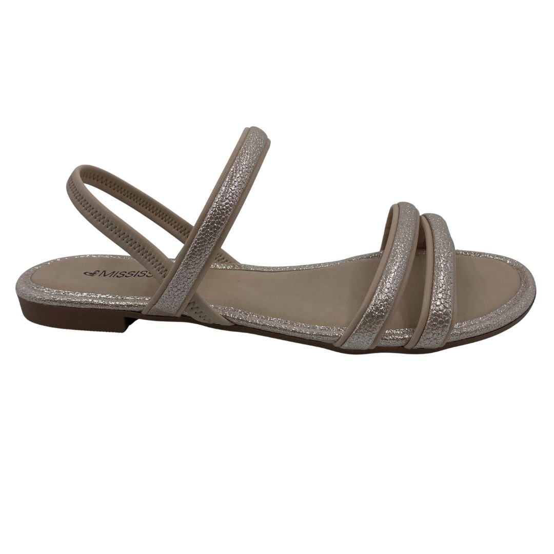 Sandália Rasteira Mississipi Calce Fácil Bege 652. O modelo que não pode faltar na sapateira feminina, a sandália rasteira é uma peça atemporal e versátil, podendo ser usada com qualquer estilo de roupa, seus modelos vão desde os mais simples aos mais sofisticados com aplicações em pedras e strass. Sua sola fabricada em borracha antiderrapante garante estabilidade a cada passo, seu cabedal em napa sintética possui tiras com material metalizado com brilho, a deixando mais delicada, seu calce fácil traz praticidade e conforto na hora de vestir, sua palmilha estofada garante conforto. Mississipi Perfeita para você, compre logo a sua!