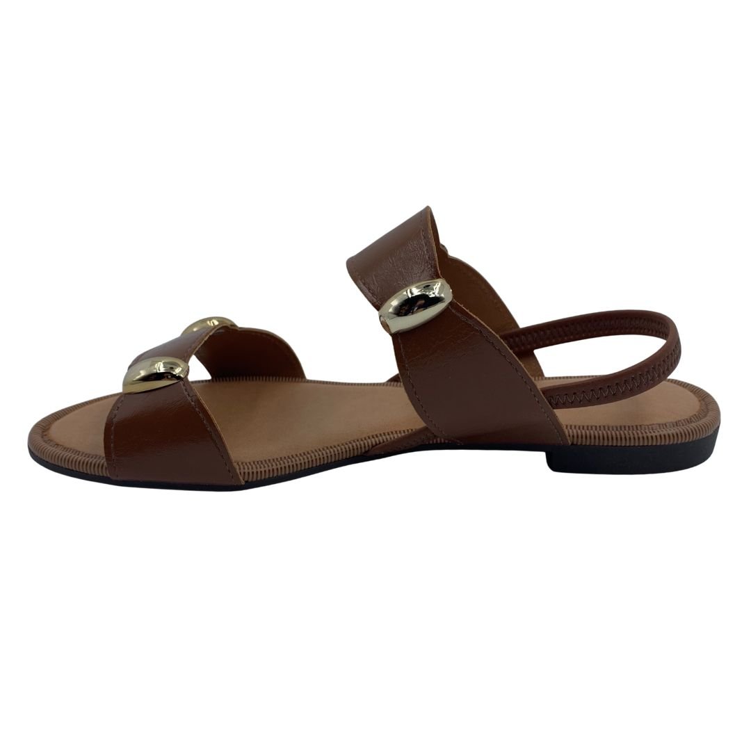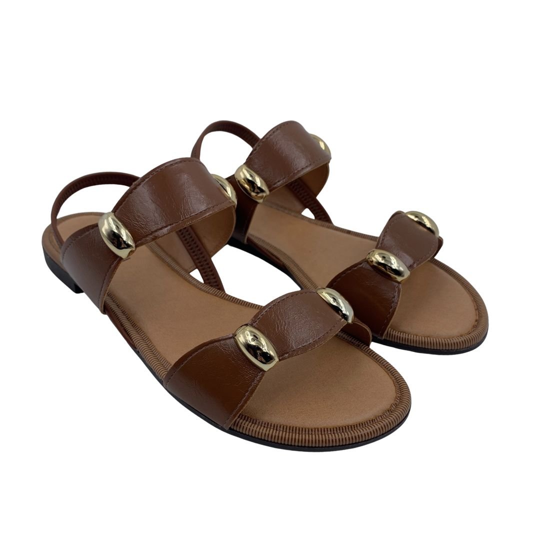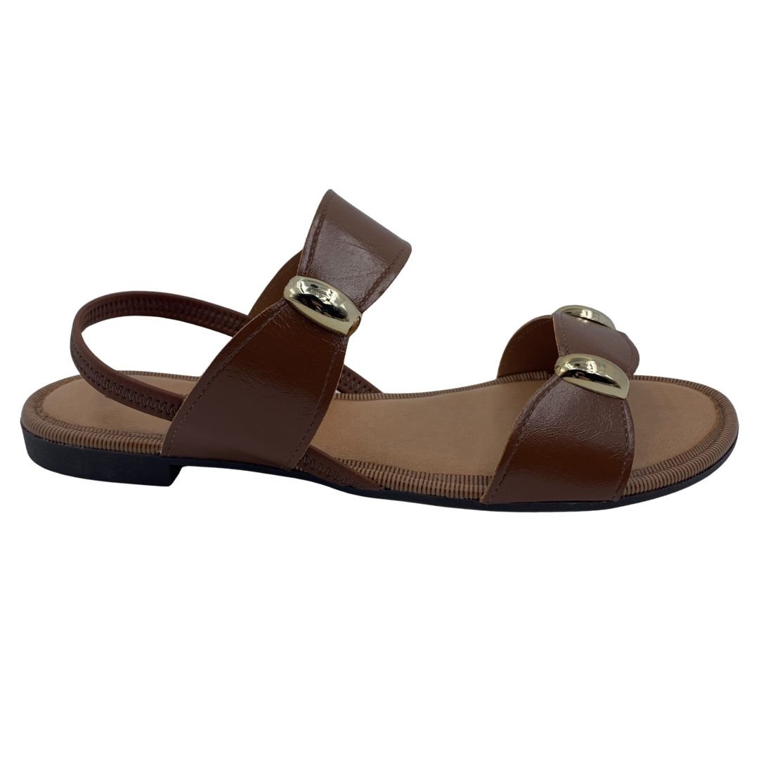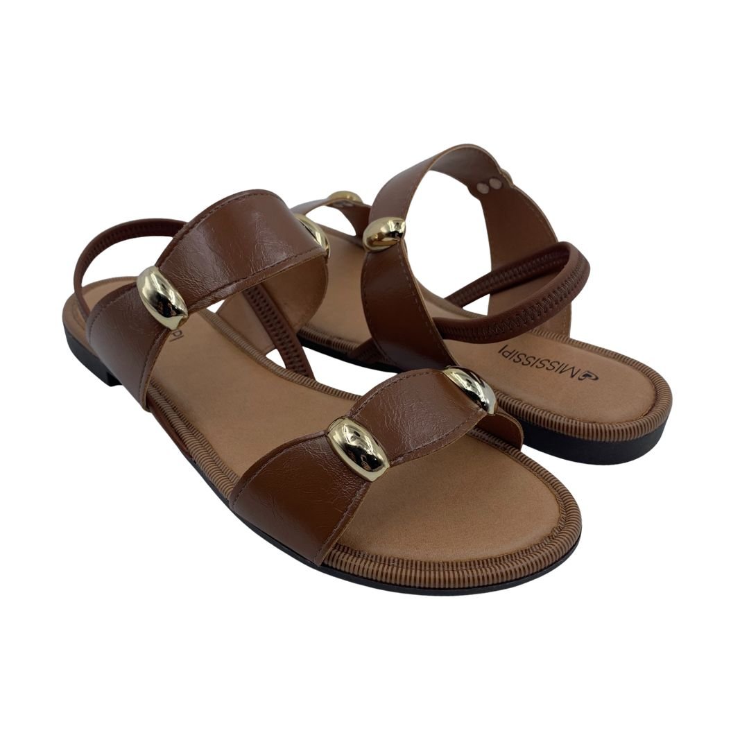 Sandália Rasteira Mississipi Calce Fácil Marrom 292. O modelo que não pode faltar na sapateira feminina, a sandália rasteira é uma peça atemporal e versátil, podendo ser usada com qualquer estilo de roupa, seus modelos vão desde os mais simples aos mais sofisticados com aplicações em pedras e strass. Sua sola fabricada em borracha antiderrapante garante estabilidade a cada passo, seu cabedal em napa sintética possui tiras largas com enfeites dourados, a deixando mais despojada, seu calce fácil traz praticidade e conforto na hora de vestir, sua palmilha estofada garante conforto. Mississipi Perfeita para você, compre logo a sua!