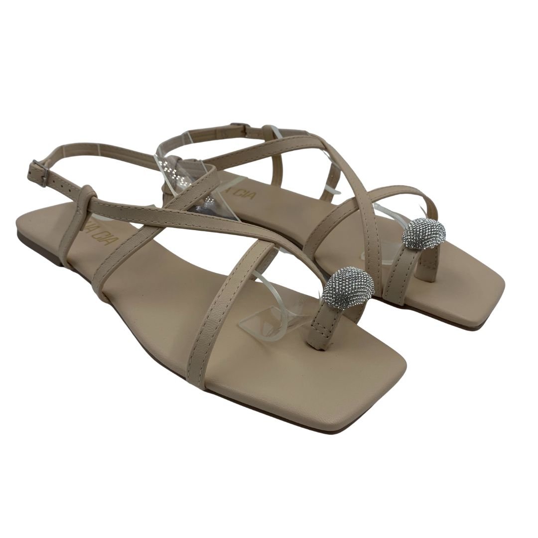 Nome: Sandália Rasteira Sua Cia com Strass Bege 16162