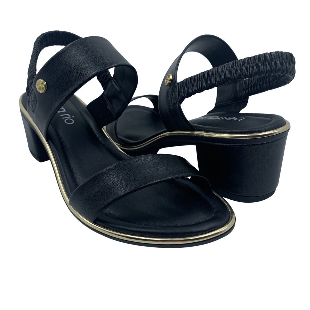 Sandália Salto Bloco Beira Rio Calce Fácil Preta 8379221. O salto bloco vem conquistando espaço a cada ano que passa, dando conforto e estabilidade à mulher, tanto no dia a dia, como em momentos de lazer. Seu solado fabricado em borracha antiderrapante garante estabilidade para cada passo, seu salto 5 cm traz conforto e versatilidade, com cabedal feito em napa sintética, possui duas tiras um sendo na parte dos dedos e outra no peito do pé, sua tira em elástico facilita na hora do calce, não necessitando amarrar, palmilha estofada trazendo ainda mais conforto durante seu uso. Compre logo sua rasteira Beira Rio, e arrase nesse verão.