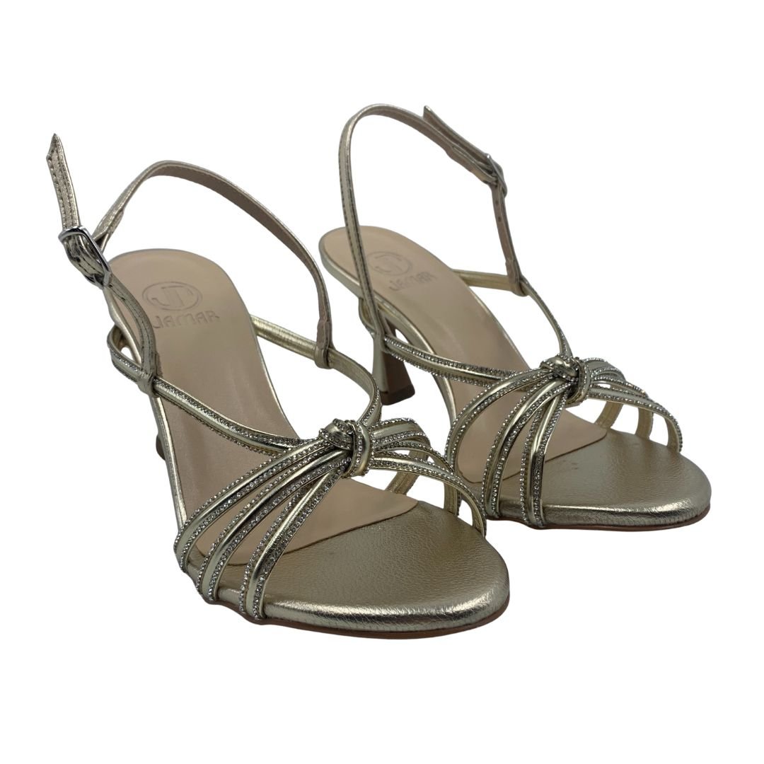 Nome: Sandália Social Salto Fino Jamar com Brilho Dourada 903419