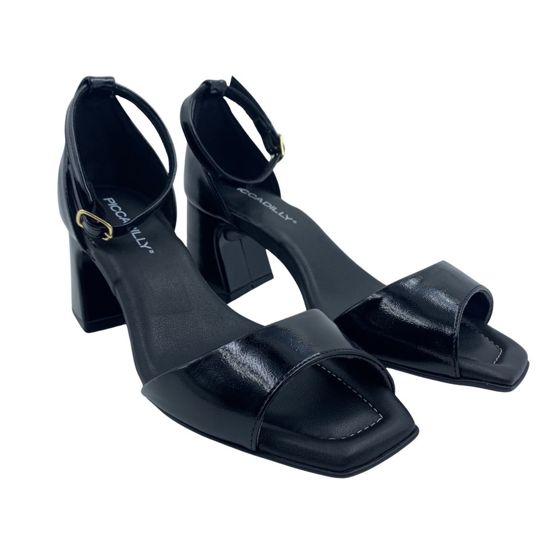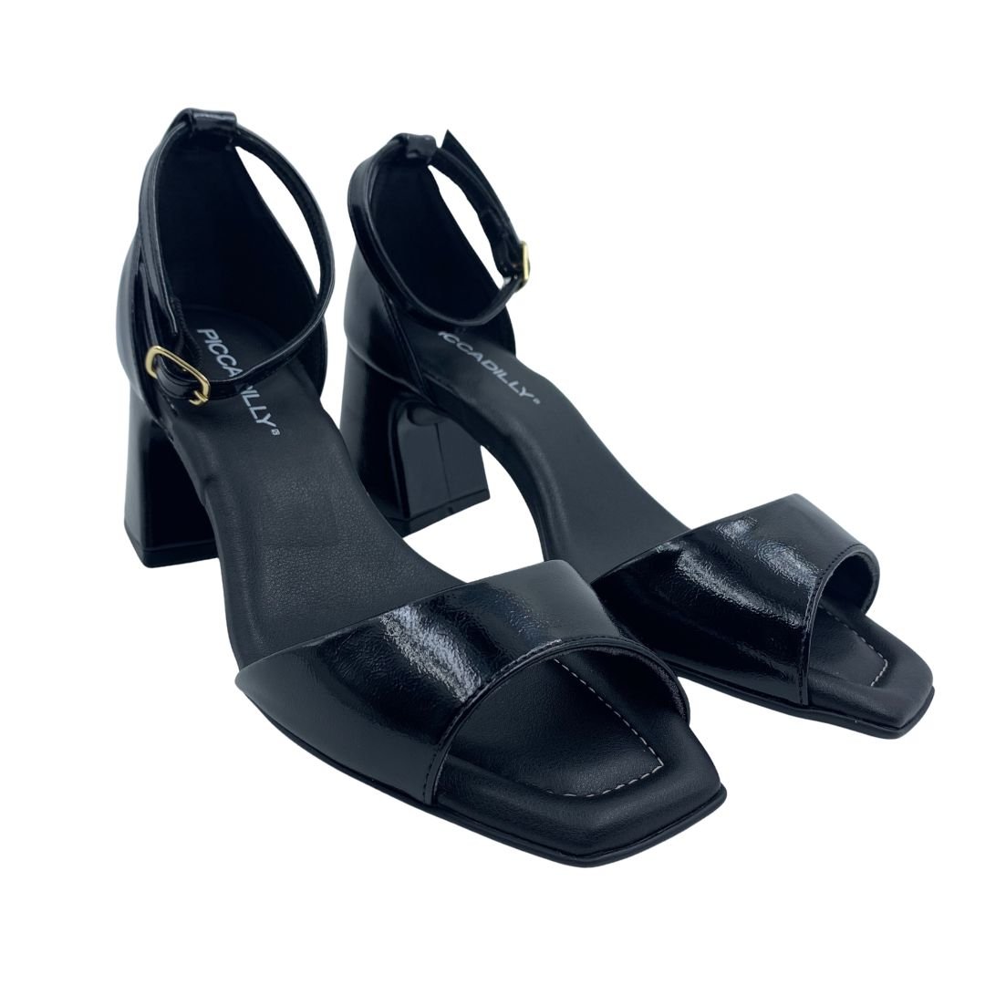 Sandália Verniz Piccadilly Salto Médio Bloco Preta 626056. O conforto que você procura para seu dia a dia, seja para o trabalho como em momentos de lazer, essa sandália da Piccadilly salto bloco é a escolha perfeita. Sua sola em borracha antiderrapante garante aderência e durabilidade à sandália, sua palmilha feita em espuma super macia, forrada em napa sintética garante o conforto e amortecimento que você precisa. Seu cabedal fabricado em napa sintética, possui uma única tira na parte frontal da sandália a deixando mais formal. Compre agora e sinta o conforto que só uma Piccadilly tem!