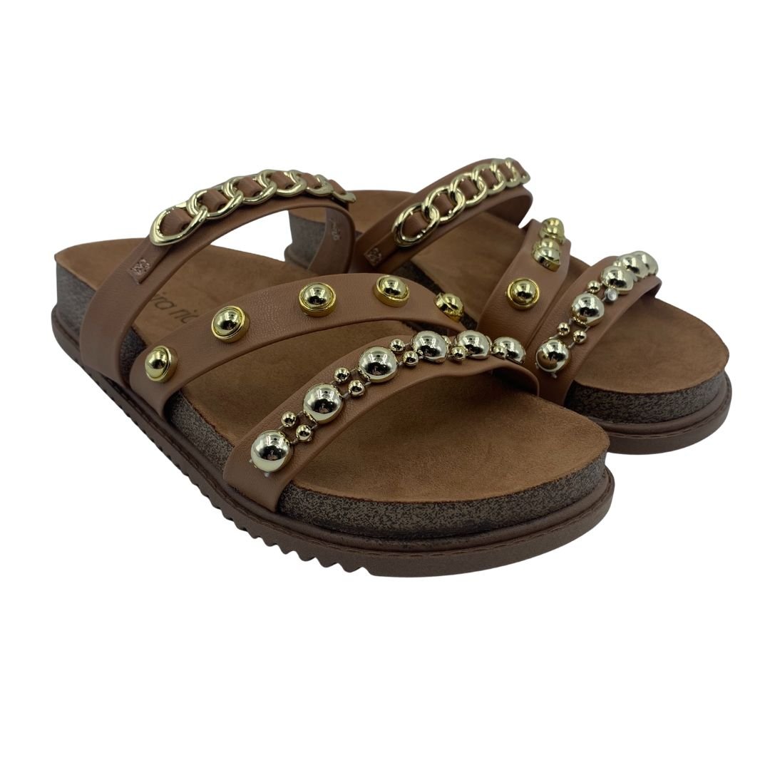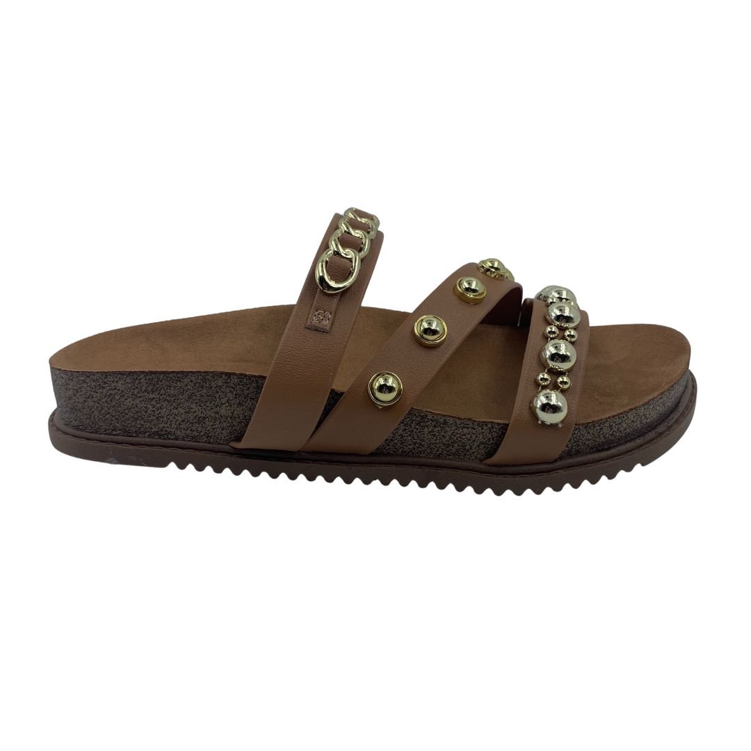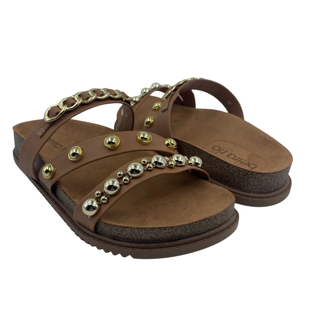 Tamanco Papete Beira Rio com Enfeites Bege 8523117. A tendência do momento que une conforto e versatilidade são as papetes, tendo seus modelos mais robustos ou mais delicados. As papetes da Beira Rio são conhecidas pelo seu conforto, nesse modelo a sola é fabricada em borracha antiderrapante, que garante estabilidade ao caminhar, sua palmilha feita em EVA traz amortecimento e conforto durante seu uso. Seu cabedal é fabricado em napa sintética, possui enfeites dourados que a deixam mais moderna. Compre logo sua papete Beira Rio, e arrase nesse verão.