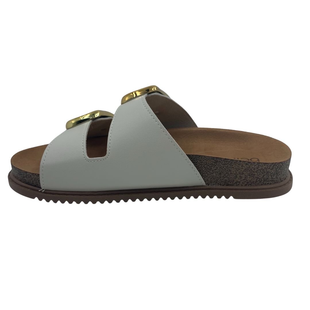 Tamanco Papete Beira Rio Fivela Off White 8523116. A tendência do momento que une conforto e versatilidade são as papetes, tendo seus modelos mais robustos ou mais delicados. As papetes da Beira Rio são conhecidas pelo seu conforto, nesse modelo a sola é fabricada em borracha antiderrapante, que garante estabilidade ao caminhar, sua palmilha feita em EVA traz amortecimento e conforto durante seu uso. Seu cabedal é fabricado em napa sintética, possui fivela para melhor ajuste, se adequando a vários formatos de pés. Compre logo sua papete Beira Rio, e arrase nesse verão.