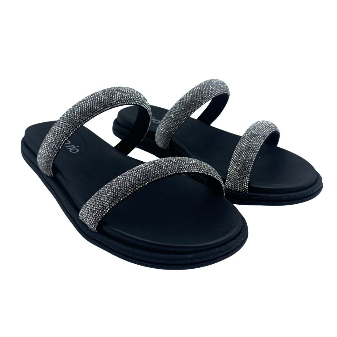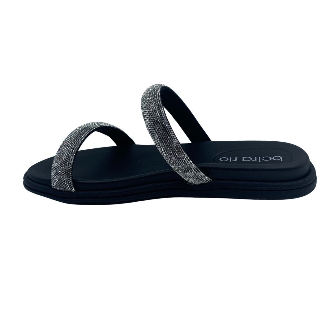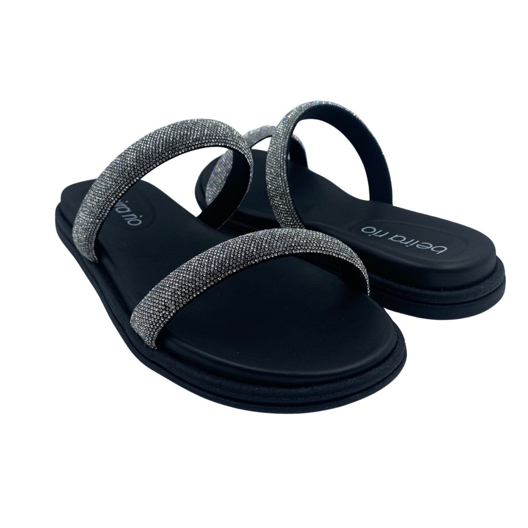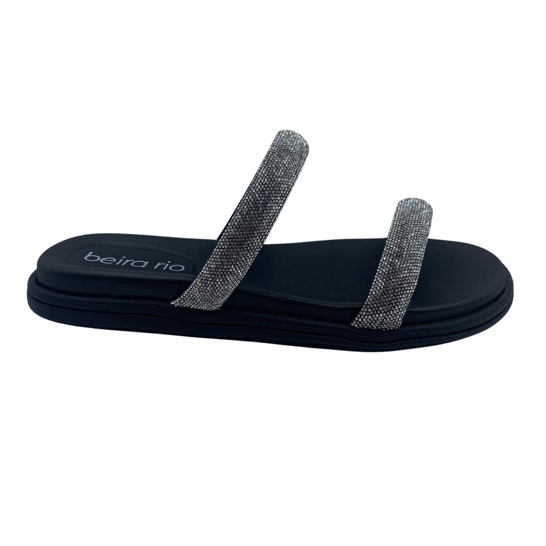 Tamanco Papete com Strass Prata Beira Rio Preta 8488122. A tendência do momento que une conforto e versatilidade são as papetes, tendo seus modelos mais robustos ou mais delicados. As papetes da Beira Rio são conhecidas pelo seu conforto, nesse modelo a sola é fabricada em borracha antiderrapante, que garante estabilidade ao caminhar, sua palmilha feita em EVA traz amortecimento e conforto durante seu uso. Suas tiras feitas em strass à deixam mais delicada, perfeita para usar nos dias mais quentes. Compre logo sua papete Beira Rio, e arrase nesse verão.
