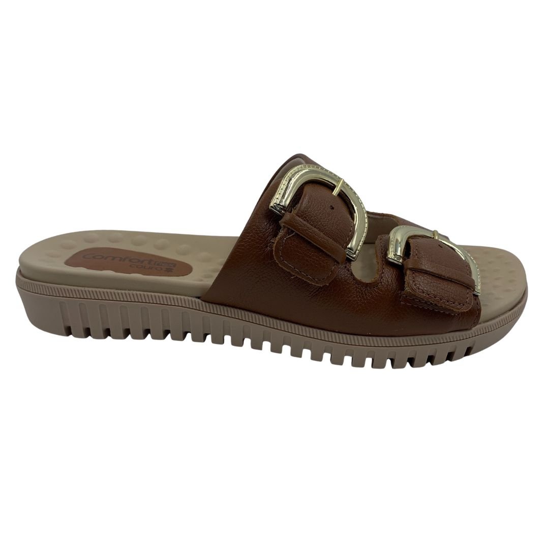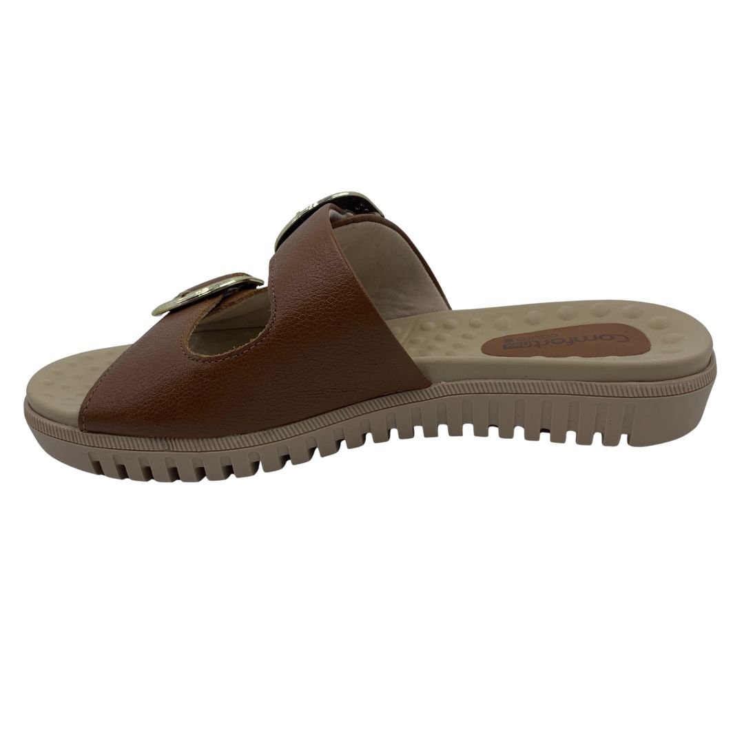 Nome: Tamanco Papete Couro Comfortflex com Fivela Marrom 2345404