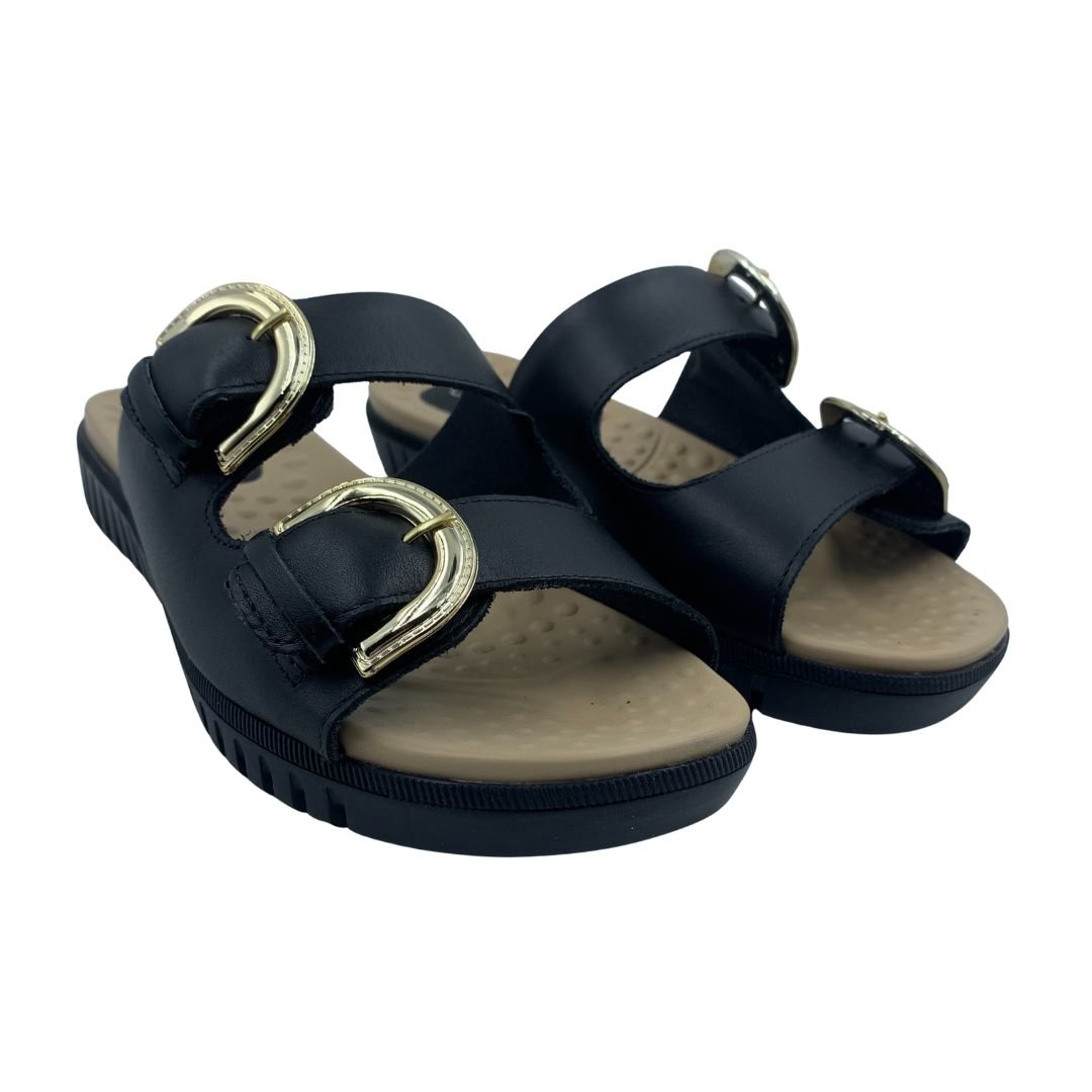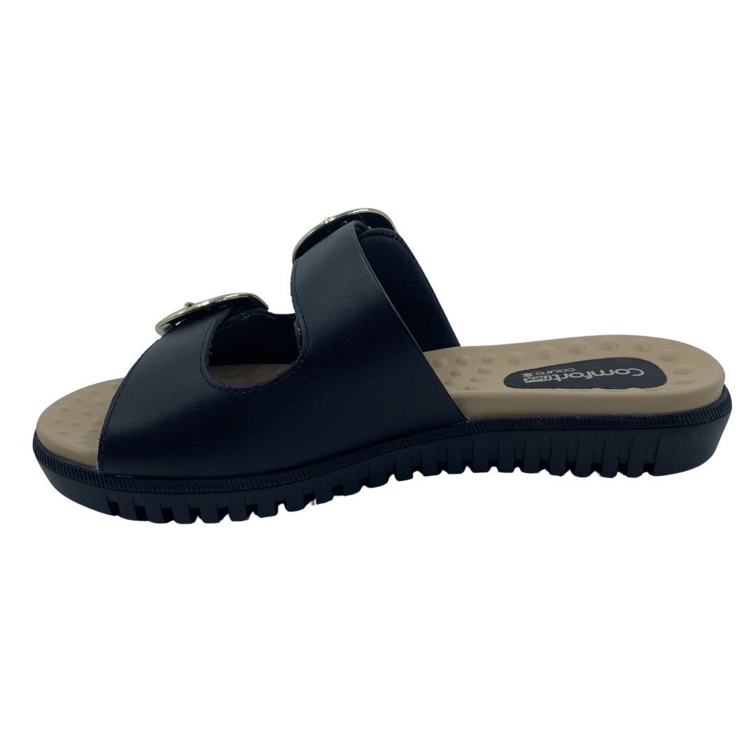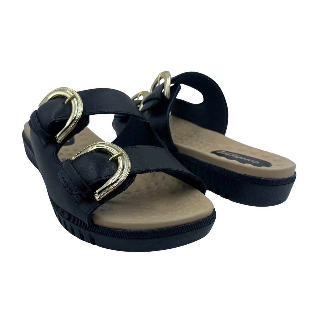 Nome: Tamanco Papete Couro Comfortflex com Fivela Preto 2345404