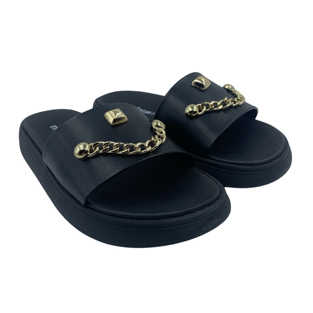 Nome: Tamanco Papete Slide Moleca com Corrente Preto 5469154