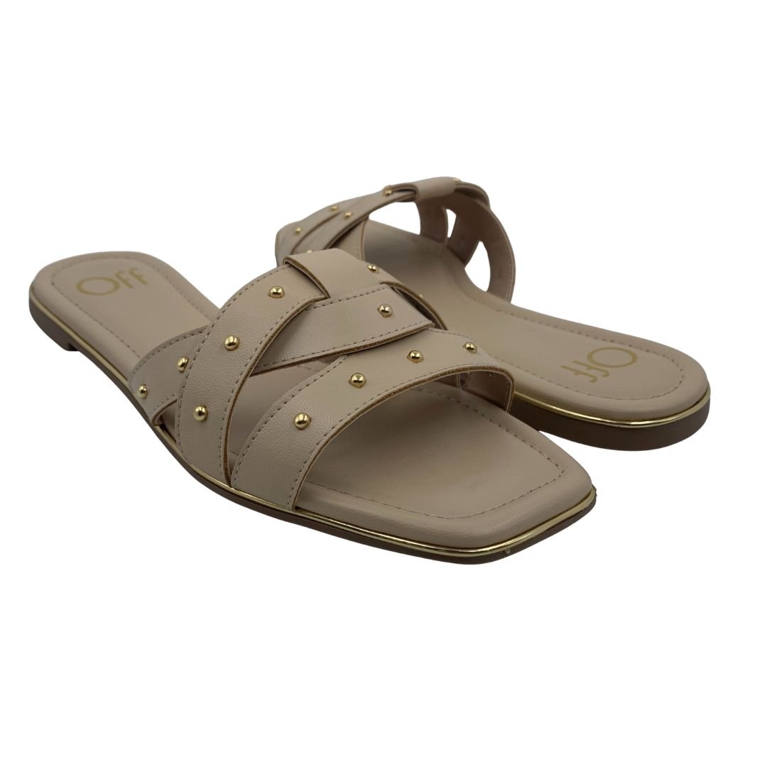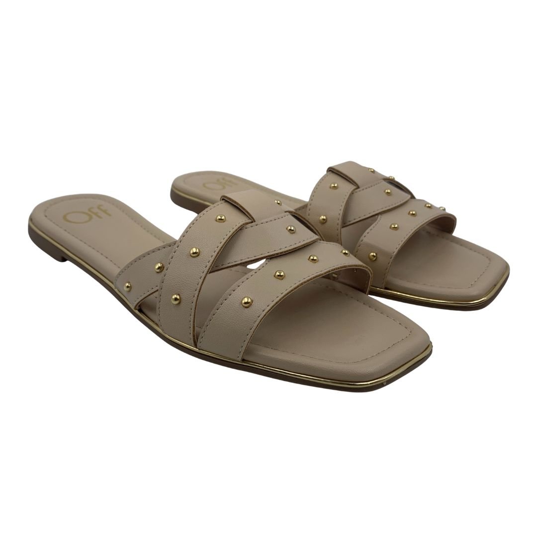Nome: Tamanco Rasteira Offline com Spikes Bege 24106
