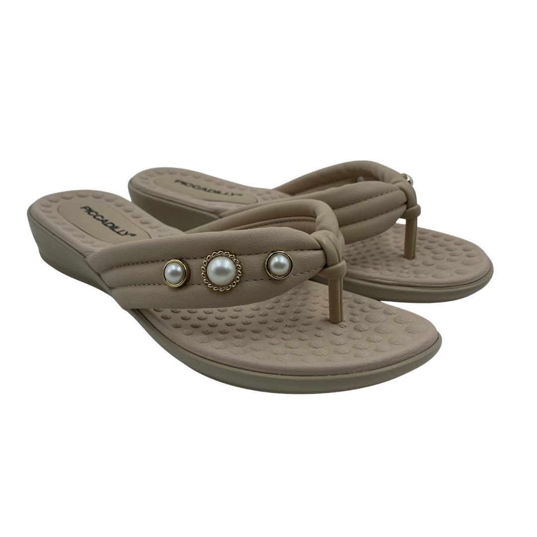 Nome: Tamanco Rasteira Piccadilly com Enfeite Bege 500402