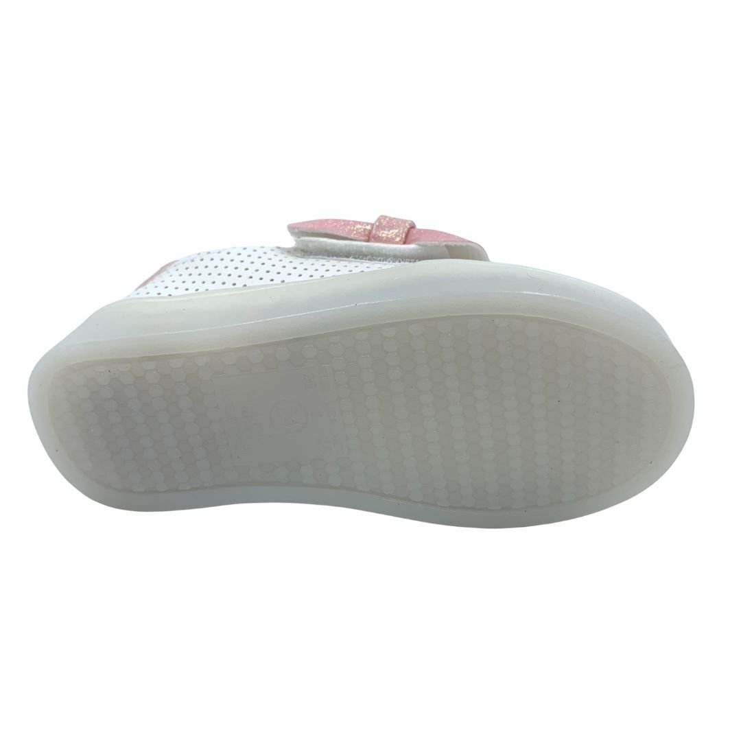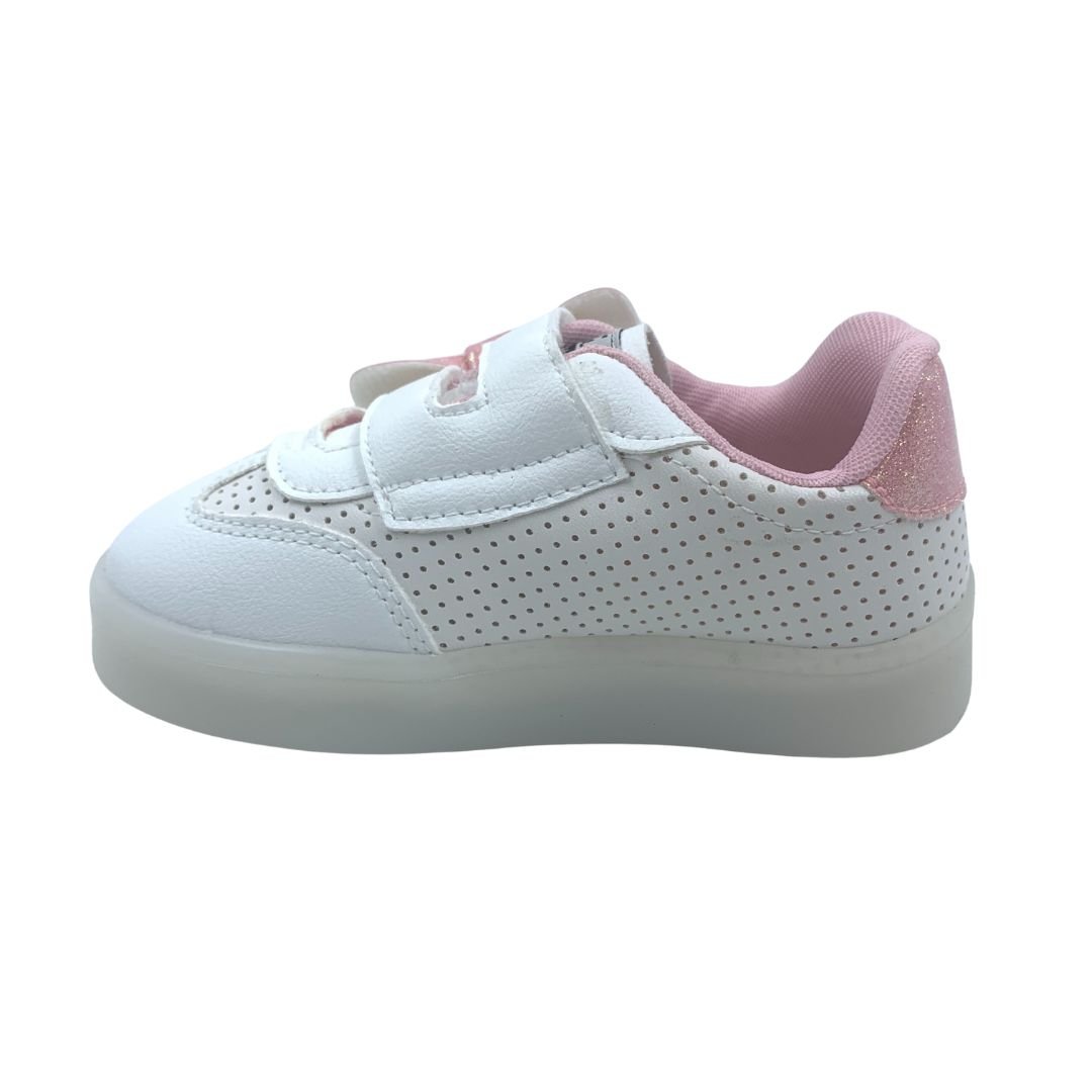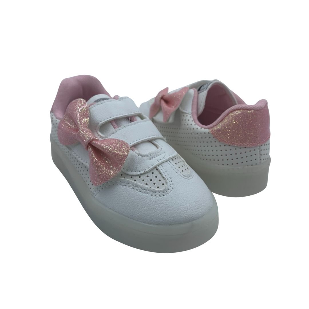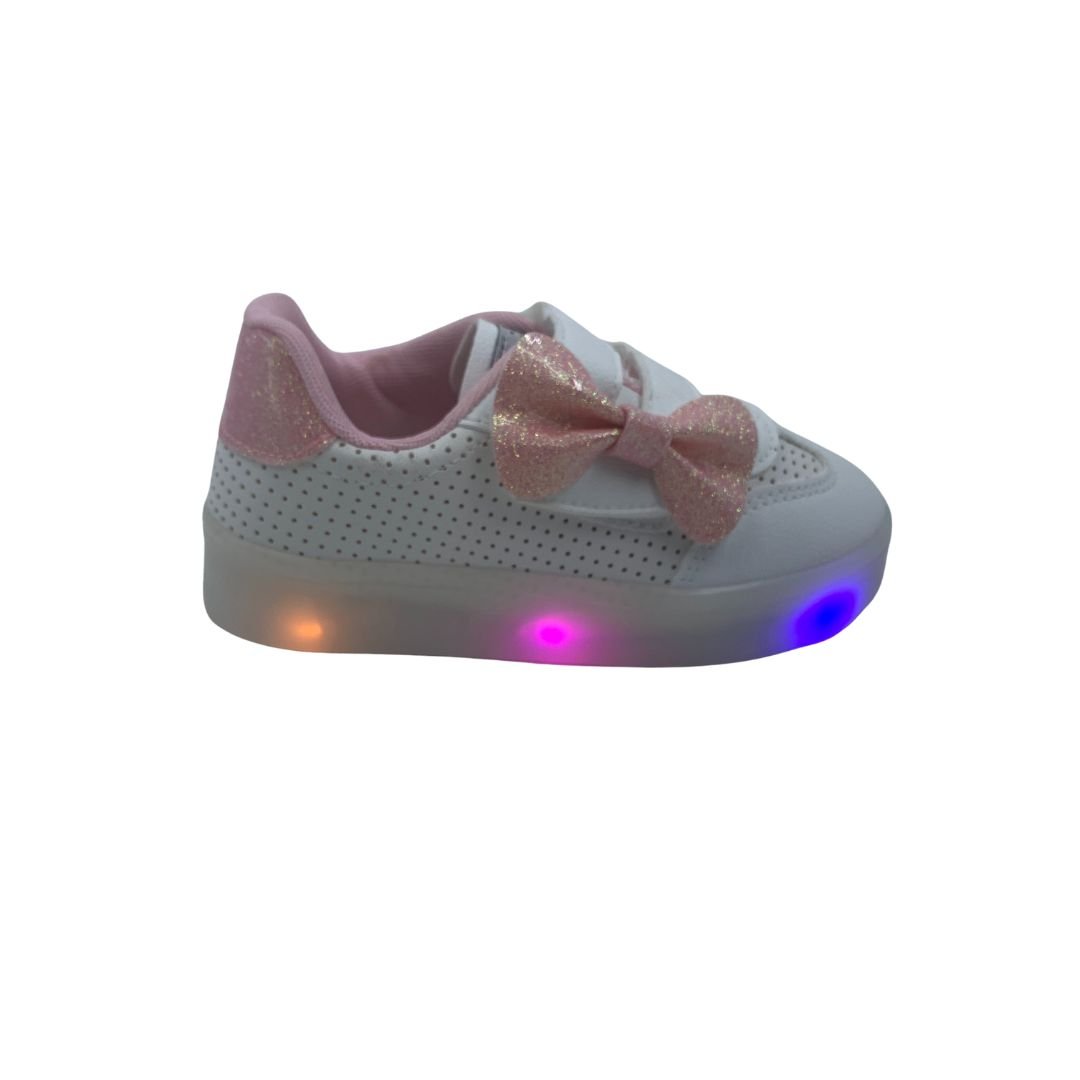 Tênis Bebê Pisca-Pisca Mini Sua Cia com Laço Branco 00730. Os tênis já são os queridinhos do universo feminino, e agora das meninas também, além de serem lindos são super confortáveis e combinam com qualquer look. Sua princesa vai amar esse tênis com luz de led colorida na sola, uma diversão a cada passo. Fabricado em napa sintética com detalhe rosa com brilho, que dá um toque de delicadeza ao modelo, seu fechamento em superfície alto colante com enfeite de laço rosa com brilho, facilita o dia a dia das mães. Deixe sua princesa estilosa com os calçados Mini Sua Cia, compre já, do conforto da sua casa!