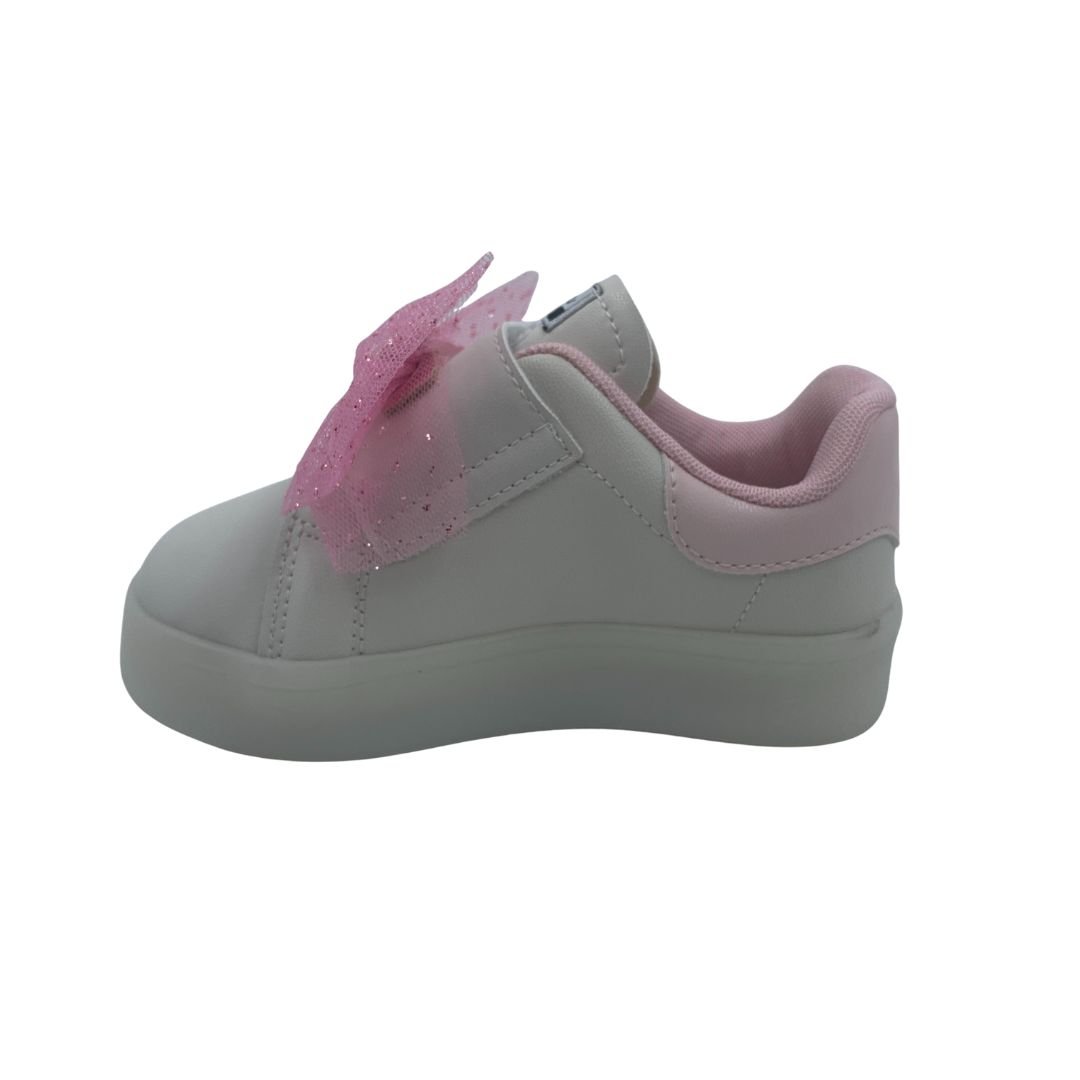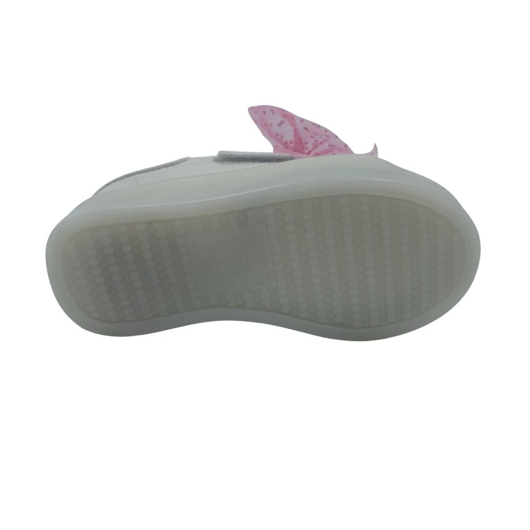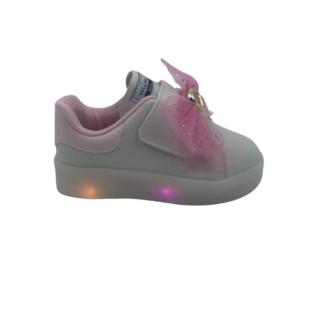 Tênis Bebê Pisca-Pisca Mini Sua Cia com Laço Branco 00731. Os tênis já são os queridinhos do universo feminino, e agora das meninas também, além de serem lindos são super confortáveis e combinam com qualquer look. Sua princesa vai amar esse tênis com luz de led colorida na sola, uma diversão a cada passo. Fabricado em napa sintética com detalhe em laço rosa de tule com brilho com um pingente de coração dourado, que dá um toque de delicadeza ao modelo, seu fechamento em superfície alto colante, facilita o dia a dia das mães. Deixe sua princesa estilosa com os calçados Mini Sua Cia, compre já, do conforto da sua casa!