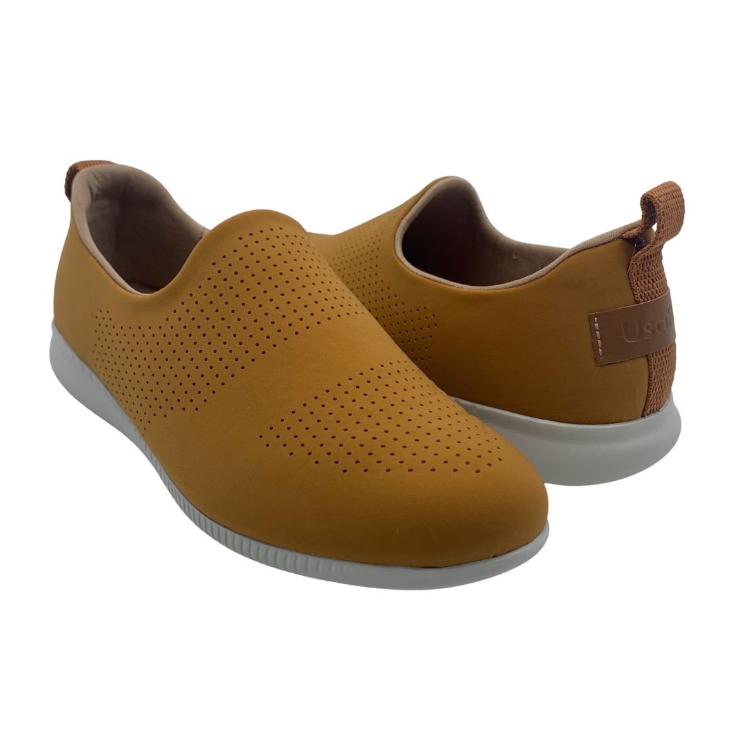 Tênis Casual Calce Fácil Tecido Usaflex Mostarda 0607. Um dos modelos mais vendidos da Usaflex em nossa loja física. Possui sistema calce fácil, que se adapta ergonomicamente, reduzindo assim a pressão dos pés durante seu uso, seu solado em EVA proporciona amortecimento e leveza ao calçado, em postos estratégicos em seu solado possui borracha antiderrapante, proporcionando assim mais estabilidade a cada passo. Garanta o seu, e sinta o conforto de um Usaflex!