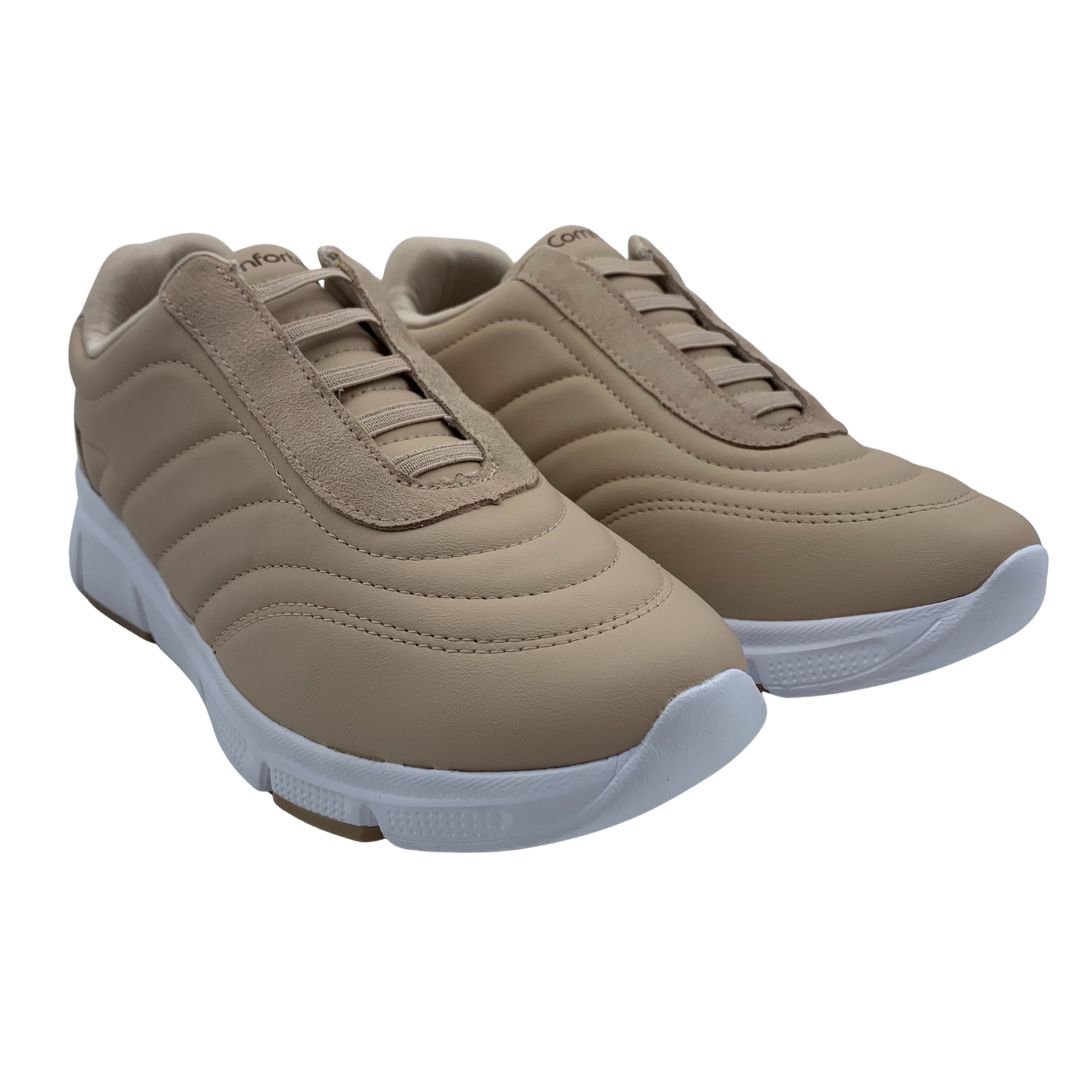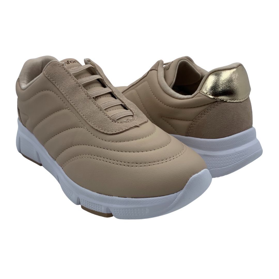 Tênis Casual Comfortflex Calce Fácil Bege 2590401. O tênis virou o queridinho no mundo feminino, por sua versatilidade, saindo do mundo esportivo, migrando para compor looks mais casuais. Este modelo é fabricado em material sintético, com detalhes em costuras, seu calce fácil com cadarço em elástico facilita o dia a dia, pois você não precisará amarrar os cadarços. Sua sola é feita em borracha antiderrapante, trazendo condigo segurança e estabilidade ao caminhar, com entressola em EVA dando leveza e amortecimento, sua palmilha em espuma forrada em tecido garante conforto. Sinta o conforto de um Comfortflex, garanta logo o seu!