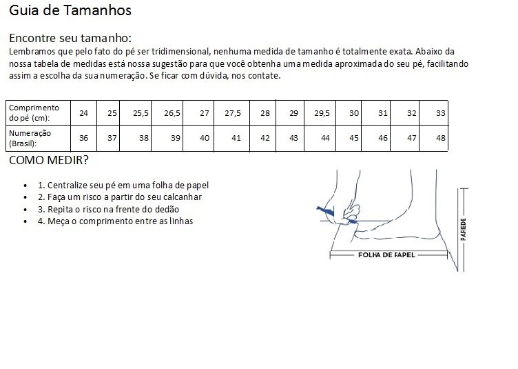 Peso: 290g (aprox. varia de acordo com a numeração).