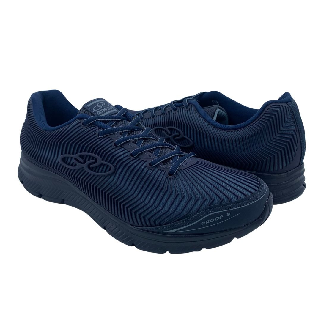 Tênis Esportivo Olympikus Masculino Proof 3 Azul. Esse é o modelo para você que procura um tênis para o dia a dia, com amortecimento e durabilidade. Seu cabedal é fabricado em tecido poliéster com a tecnologia Cover Grid, que o material é diretamente injetado no tecido, elevando os níveis de proteção, resistência e vida útil do calçado. Seu forro é composto por espuma o que eleva o conforto. Sua sola feita em EVA conta com a tecnologia Evasense, que é o amortecimento responsivo (vai e vem da sola). Garanta conforto para seu dia a dia com a Olympikus, peça já o seu!