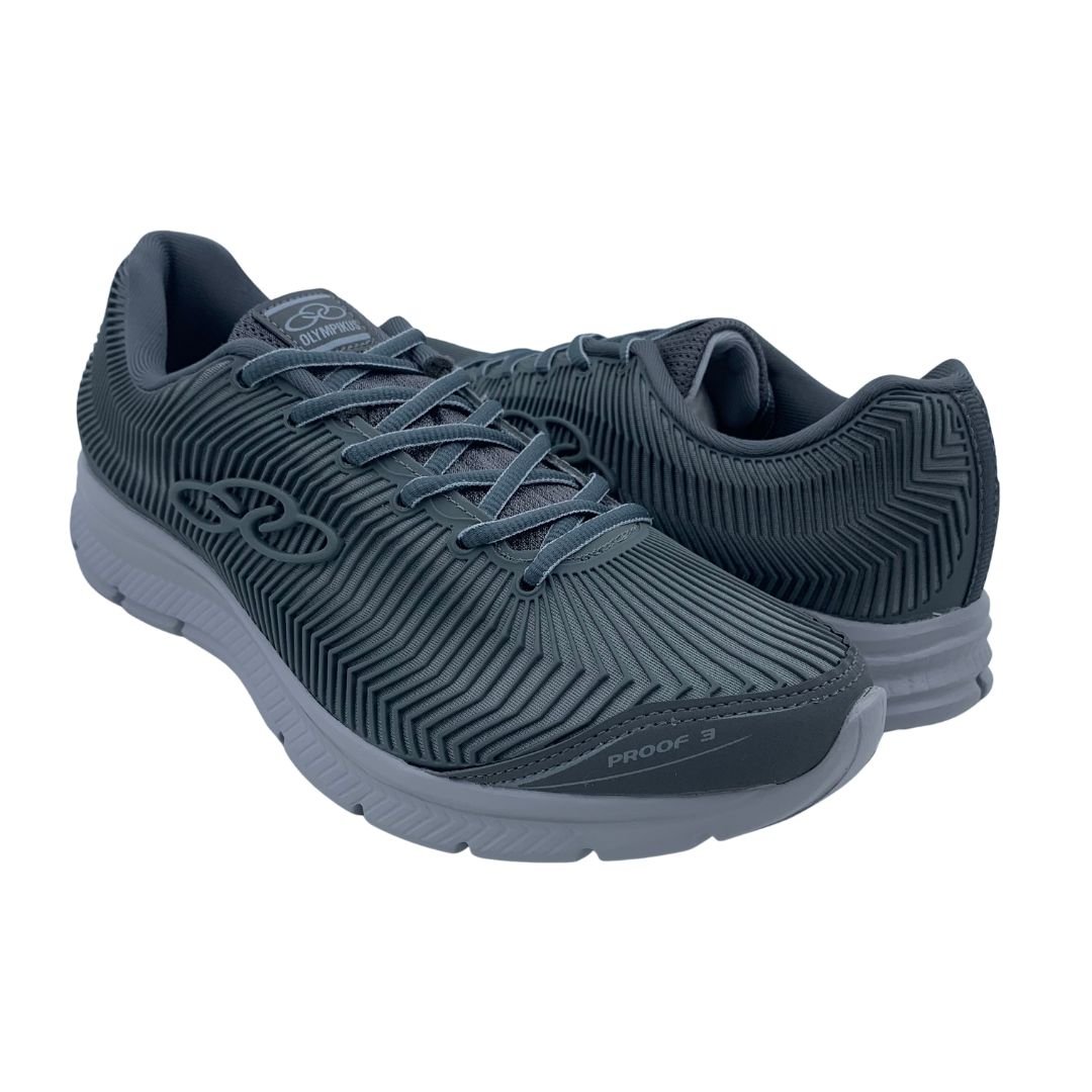 Tênis Esportivo Olympikus Masculino Proof 3 Cinza. Esse é o modelo para você que procura um tênis para o dia a dia, com amortecimento e durabilidade. Seu cabedal é fabricado em tecido poliéster com a tecnologia Cover Grid, que o material é diretamente injetado no tecido, elevando os níveis de proteção, resistência e vida útil do calçado. Seu forro é composto por espuma o que eleva o conforto. Sua sola feita em EVA conta com a tecnologia Evasense, que é o amortecimento responsivo (vai e vem da sola). Garanta conforto para seu dia a dia com a Olympikus, peça já o seu!