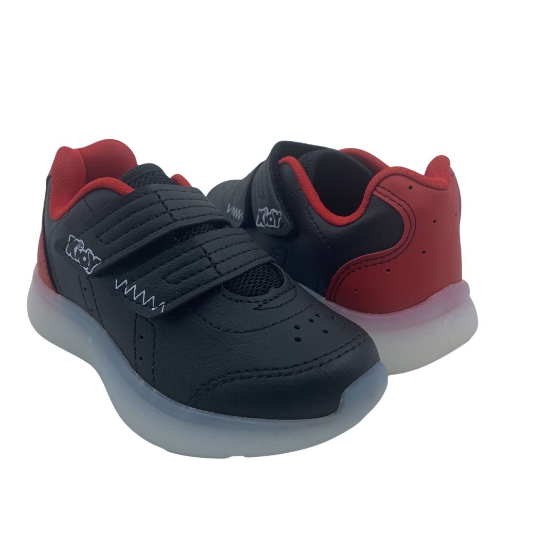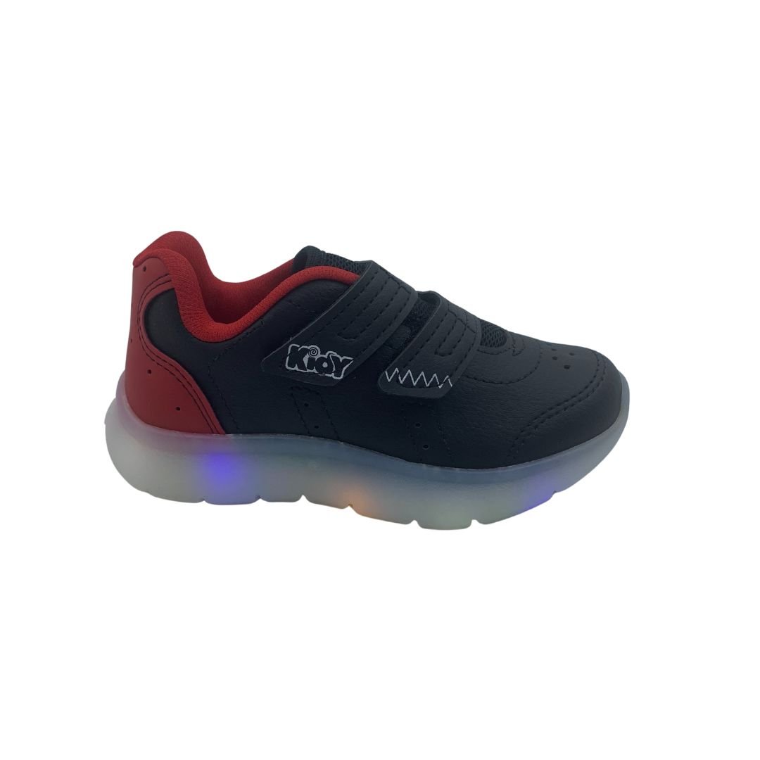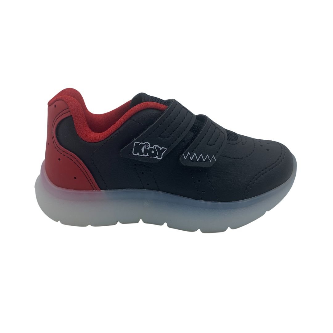 Tênis Menino Pisca-Pisca Led Anatômico Kidy Preto 200203. Escolher o tênis certo para o conforto do seu filho é essencial, pensando nisso a Kidy possui calçados Anatômicos, que ajudam na formação dos pés e conforto. Fabricado em napa sintética de qualidade trazendo durabilidade ao tênis, sua sola feita em borracha antiderrapante garante estabilidade à cada passo, possui Led na sola garantindo a diversão das meninas, com fechamento em superfície alto colante, trazendo mais autonomia. Kidy saúde e conforto para os pés das crianças, compre logo.