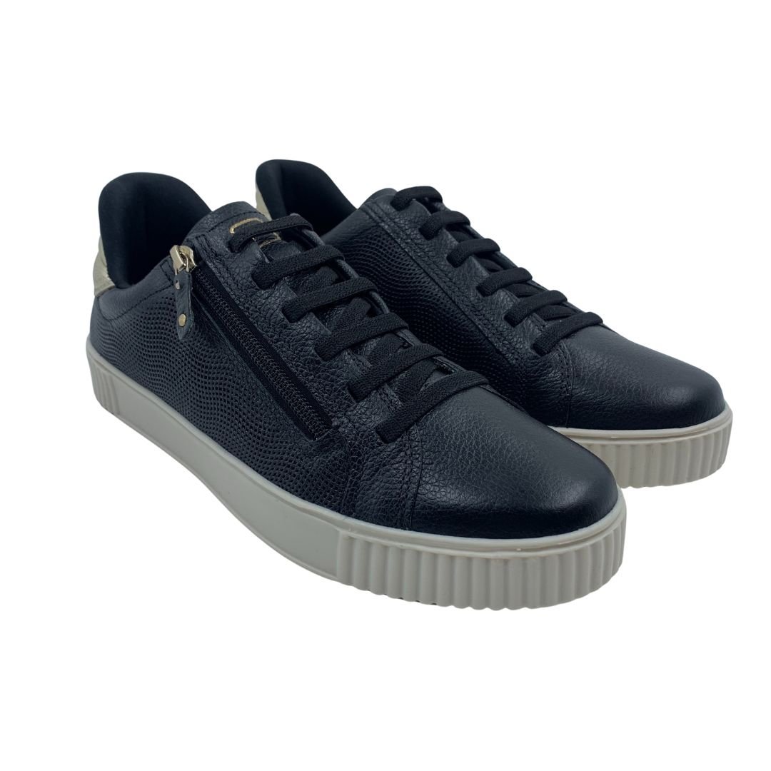 Tênis Pegada Feminino Casual Couro Preto 219023. Os tênis estão cada vez mais em alta no mundo da moda, podendo ser usados em ambientes de trabalho e de lazer, trazendo conforto e versatilidade para o dia a dia. Este modelo é fabricado em couro, que se molda ao formato dos seus pés o tornando mais macio a cada uso, com calce fácil em cadarço de elástico e zíper dando facilidade na hora de vestir. Sua sola fabricada em borracha antiderrapante traz estabilidade e segurança ao caminhar, palmilha feita em EVA, forrada em material Ecoline de alto conforto, proporcionando mais conforto durante seu uso. Garanta conforto e leveza para seus dias com Pegada, compre logo o seu!